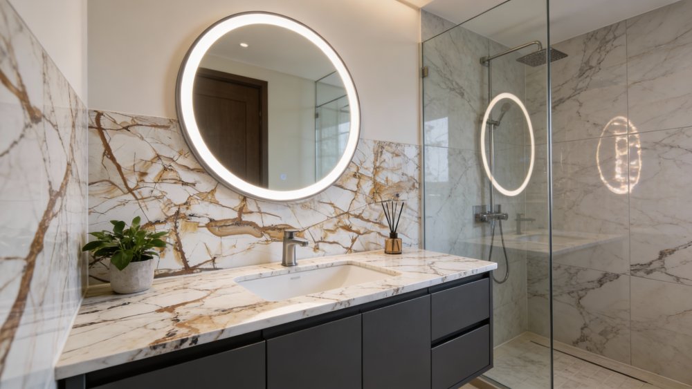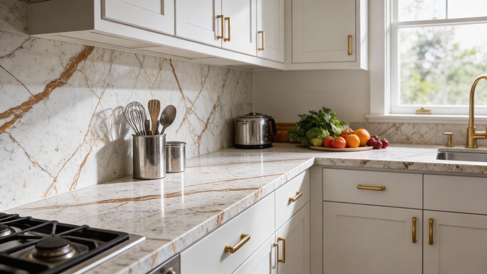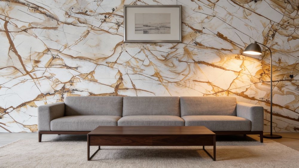 表面质感**细腻温润**,触感应平滑如玉,带有**柔和的自然光泽**(非刺眼亮面,更接近柔光石材的质感);纹理与底色过渡自然,部分区域的棕色纹理边缘略带半透明感,增添了层次与通透度;底色中隐约可见细微的肌理变化(如淡淡晕染的底色肌理),无明显杂质,整体兼具石材的厚重感与细腻的视觉温柔度,高级感十足。
