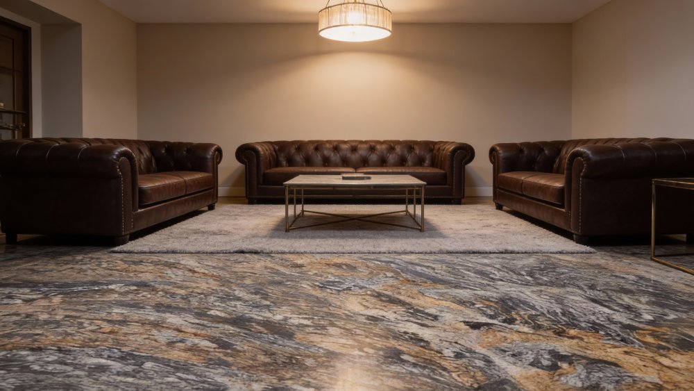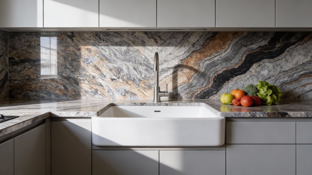 石材底色以**深浅交织的灰色系**为主调,深灰、炭灰与浅灰相互渗透,构成沉稳内敛的基底;同时,基底中隐约晕染着米白、淡褐的暖调层次,冷灰与暖棕的微妙平衡,既保留了石材的自然厚重感,又避免了单一灰色的沉闷,整体基调兼具冷静与温润的双重气质。