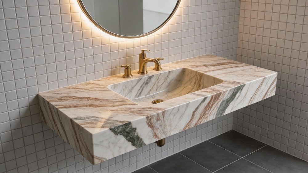 以**温暖柔和的浅米色(带淡粉调)**为基底,色调均匀中透着自然的细微渐变,没有强烈的色差冲突,整体氛围温润雅致,如同清晨的暖光轻覆于石面,给人舒缓、亲和的视觉感受。