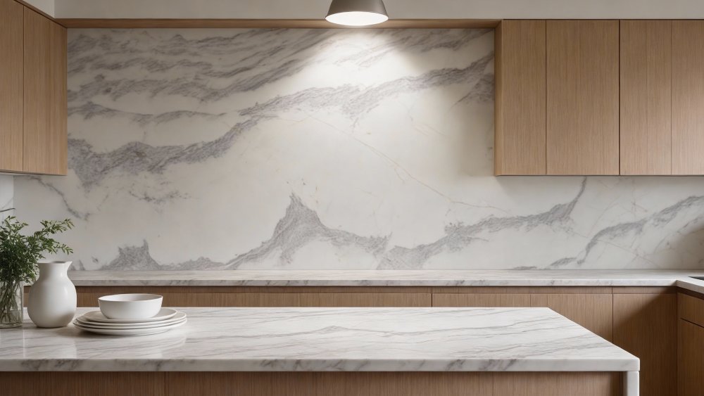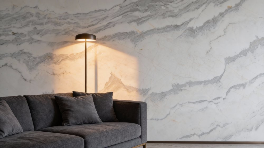 这款石材的底色以纯净柔和的亮白色为核心基调,整体色调清新明快,无多余杂色干扰,宛如初雪般洁净雅致,奠定了轻盈通透的视觉基础,给人以舒适、开阔的第一印象。