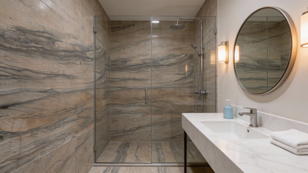 ### **一、底色基调:暖棕柔调,自然温润** 石材的底色基调为**柔和的暖棕色系**,以浅棕与米褐为主调,间杂深浅不一的暖调过渡(如浅棕向深棕的自然晕染),整体氛围温暖而不张扬。既避免了冷色调的疏离感,也未陷入深棕的沉闷,奠定了温润雅致的视觉基底,适配多种空间风格的自然调性。