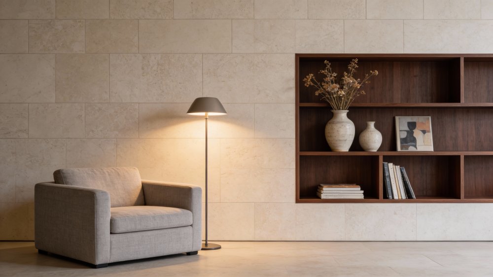 ### 细节质感 触感应是**细腻平滑的哑光质地**,表面无刺眼光泽,却带着石材天然的温润肌理。细小斑点与纤细纹理赋予表面微妙的层次感,不粗糙也不刻意抛光,保留了天然石材的质朴感,又因细腻的处理显得精致柔和,仿佛能触摸到矿物颗粒沉淀的细微凹凸,兼具自然原生性与舒适亲肤感。
