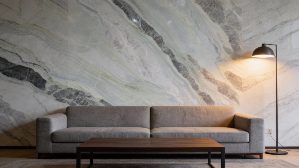 ### 细节质感 表面呈现细腻光滑的质感,带有温润的光泽感(局部可见细微反光点),纹理边缘过渡自然,无生硬界限。深浅纹理的叠加让表面富有立体层次,触感应是细腻顺滑的,整体质感兼具天然石材的质朴与现代材料的精致,视觉上给人舒适、雅致的体验。