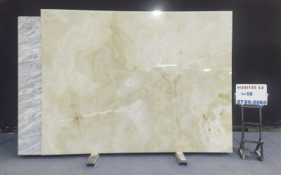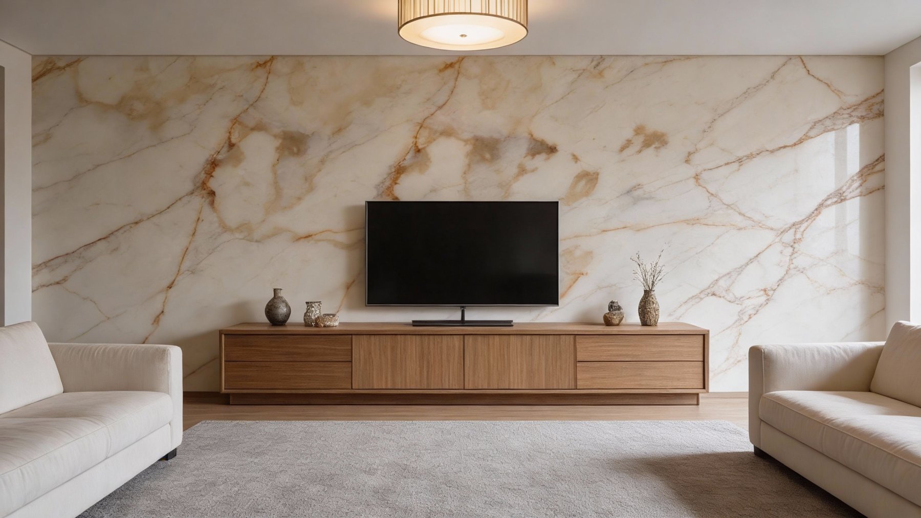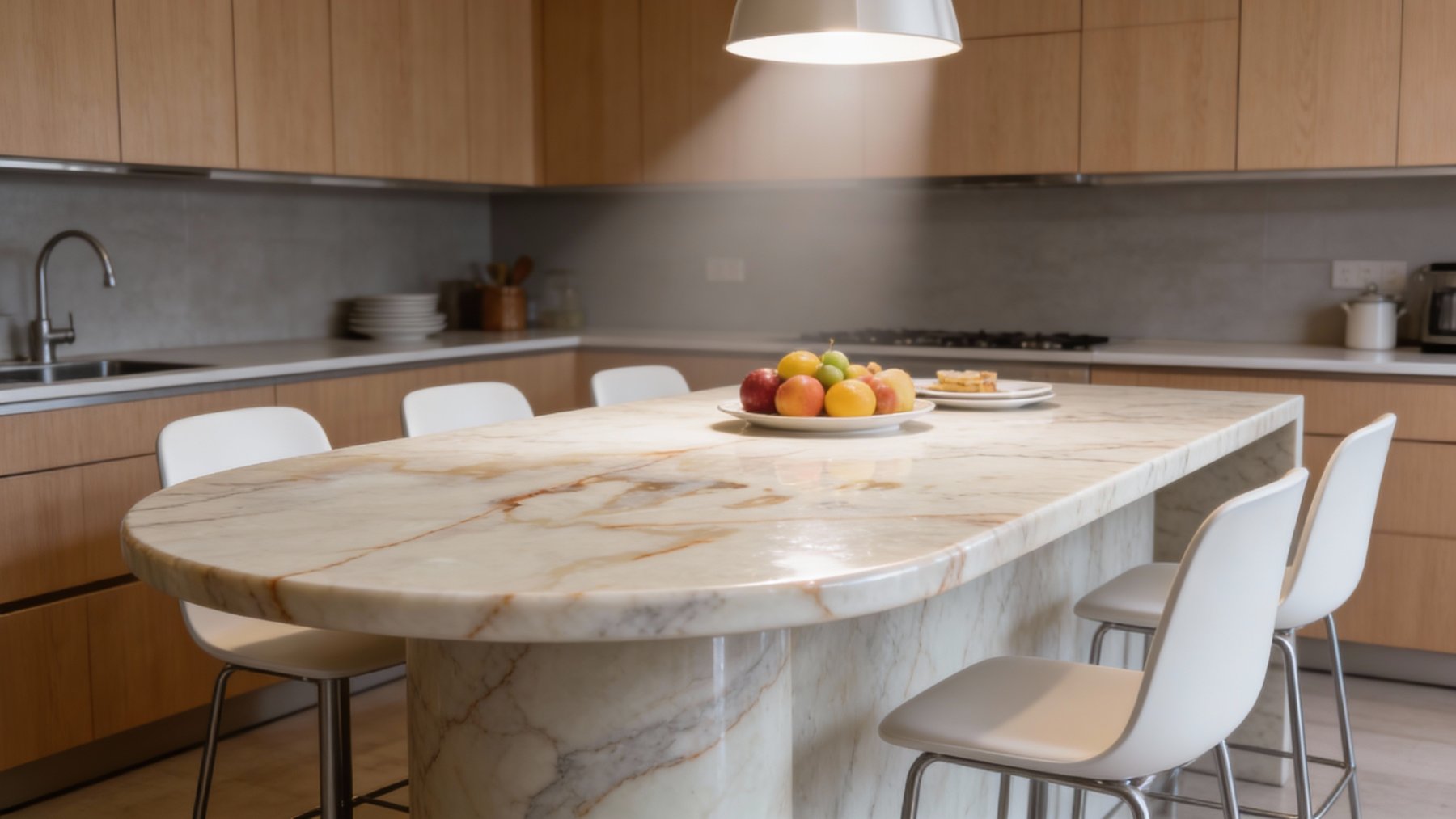 这款石材的底色基调为**温润浅米白**,略带暖调的柔和质感,似清晨薄纱般轻盈雅致。整体色调干净通透,无强烈的色彩冲突,既保留了天然石材的质朴感,又传递出温馨舒适的视觉温度,为空间营造出柔和治愈的氛围基底。