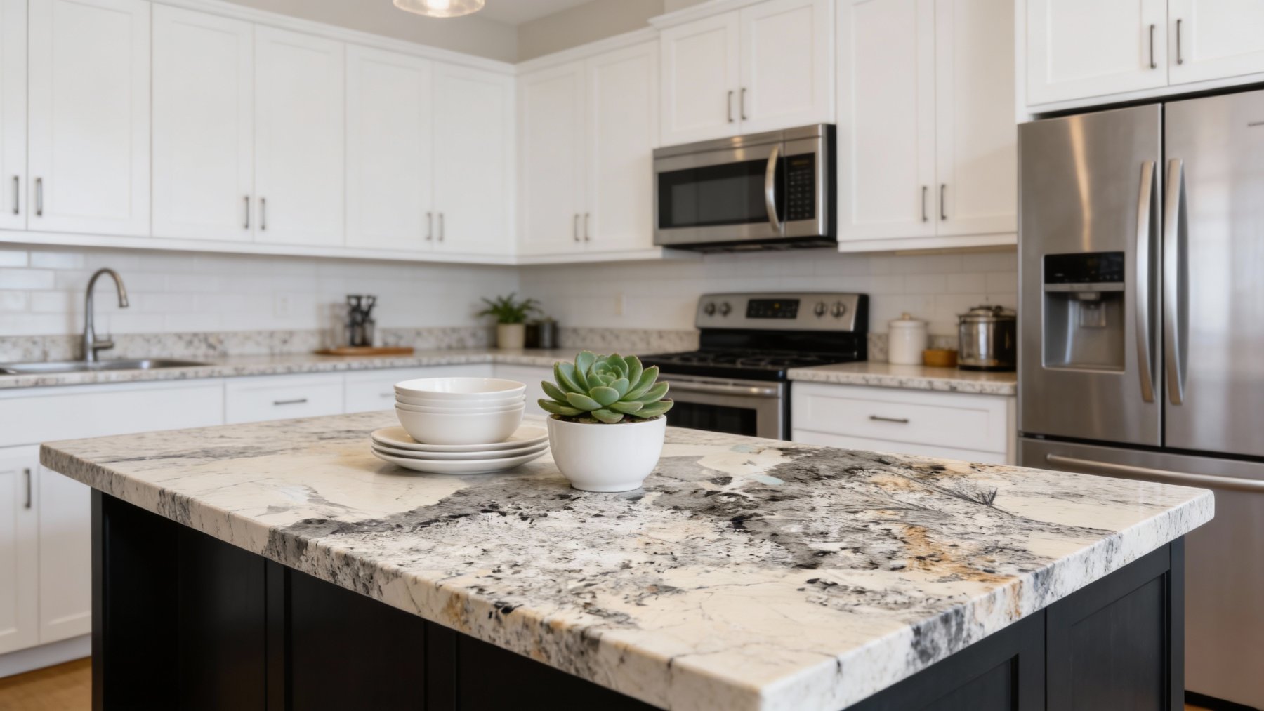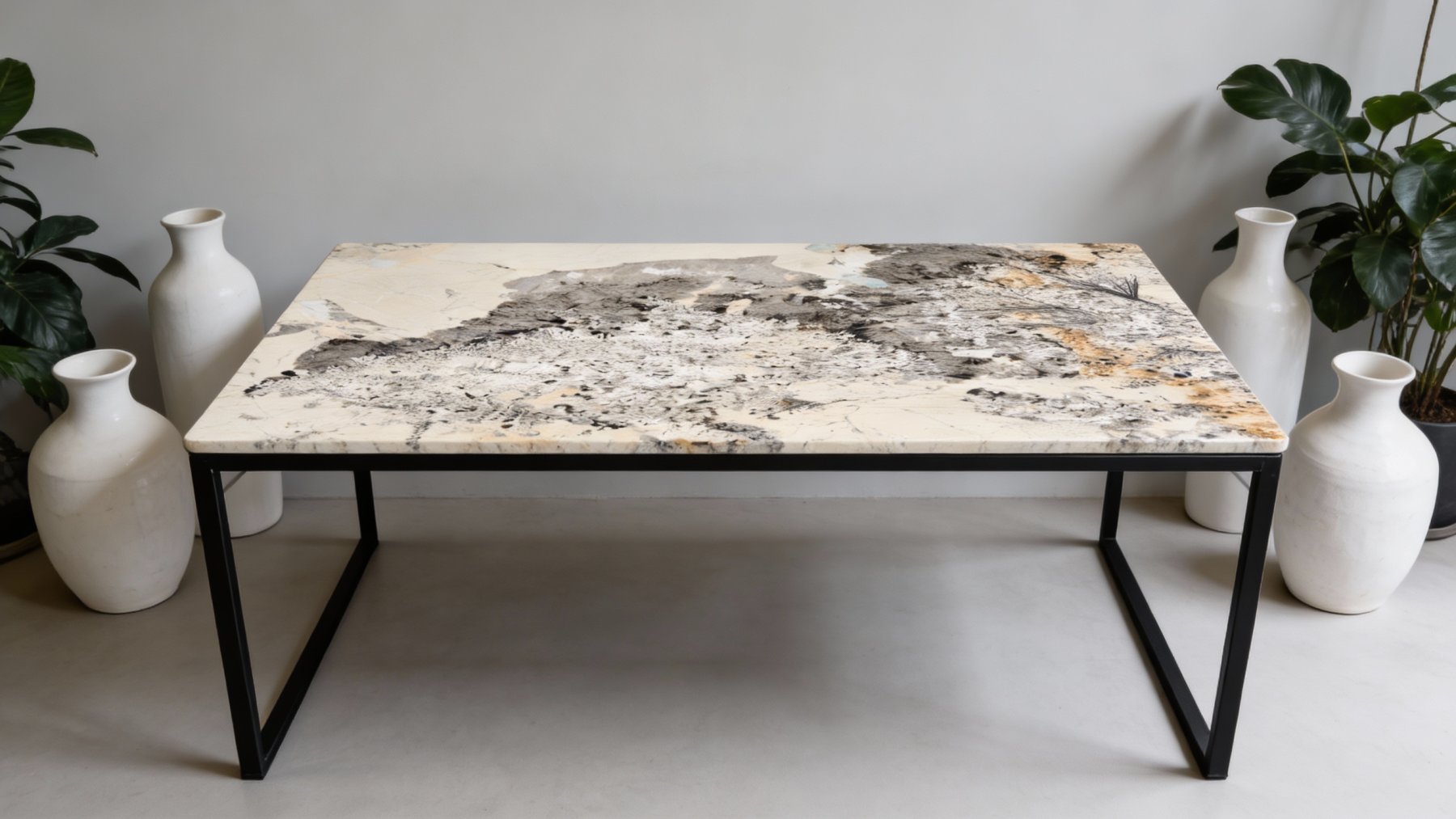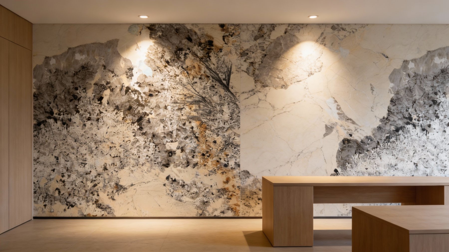 石材表面呈现哑光的天然质感,触摸时能感受到细微的颗粒感与凹凸肌理,既保留了石材原始的粗犷,又因色调的柔和而不失雅致。深色斑点处带有矿物结晶的颗粒感,底色区域则相对平滑却暗藏细腻的纹理变化,每一处细节都彰显着自然的随机性——没有重复的图案,却在斑驳中形成独特的韵律,仿佛能触摸到岁月沉淀的温度,适合营造自然复古、艺术感或侘寂风的空间氛围。