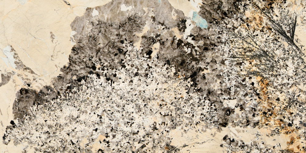 以柔和的浅米白色为基底,间杂着淡灰白与微暖的米黄调自然过渡,整体色调温润静谧,如同被时光打磨过的天然岩壁底色,没有刻意的修饰感,传递出质朴而舒缓的原始气息。