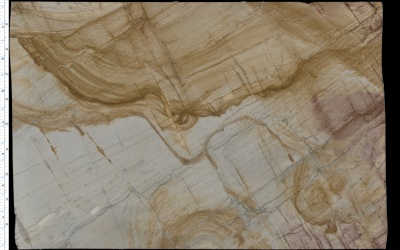 表面兼具细腻温润与天然肌理感,呈半哑光质地。纹理边缘既有清晰的色彩界限,也有模糊的渐变过渡,隐约可见矿物颗粒的细微结晶;部分区域带轻微凹凸肌理,仿佛能触摸到地质层的岁月褶皱,既保留了天然石材的质朴感,又通过细腻的色彩过渡与纹理层次,传递出高级雅致的质感。