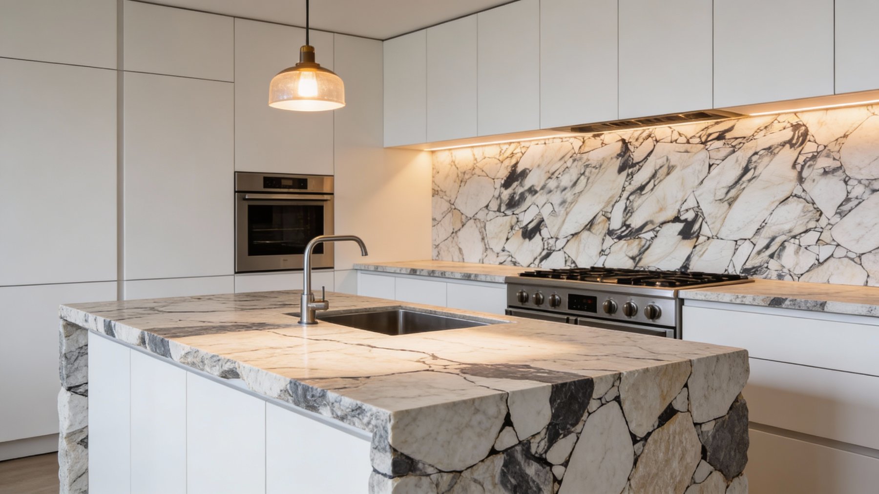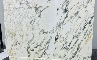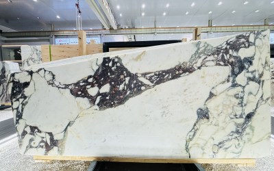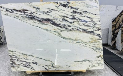 这款石材的底色以**温润柔和的浅暖白色**为主调,局部略带淡奶油或米白色调,整体氛围清新雅致,既保留了天然石材的纯净感,又因暖调基底避免了冷白的生硬,给人干净通透且亲和的视觉感受。