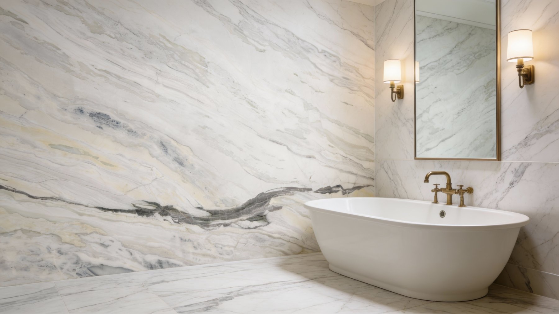 石材表面细腻致密,带有柔和温润的光泽感,触感应是顺滑如玉。纹路细节层次丰富:深浅过渡自然,部分区域的纹路边缘晕染出淡淡的灰色雾霭,增添朦胧朦胧的朦胧质感;深色纹路处则更显沉稳凝练,与浅色基底形成细腻对比,让整体既精致耐看,又因自然的纹理变化而避免单调,尽显高端石材的质感张力。