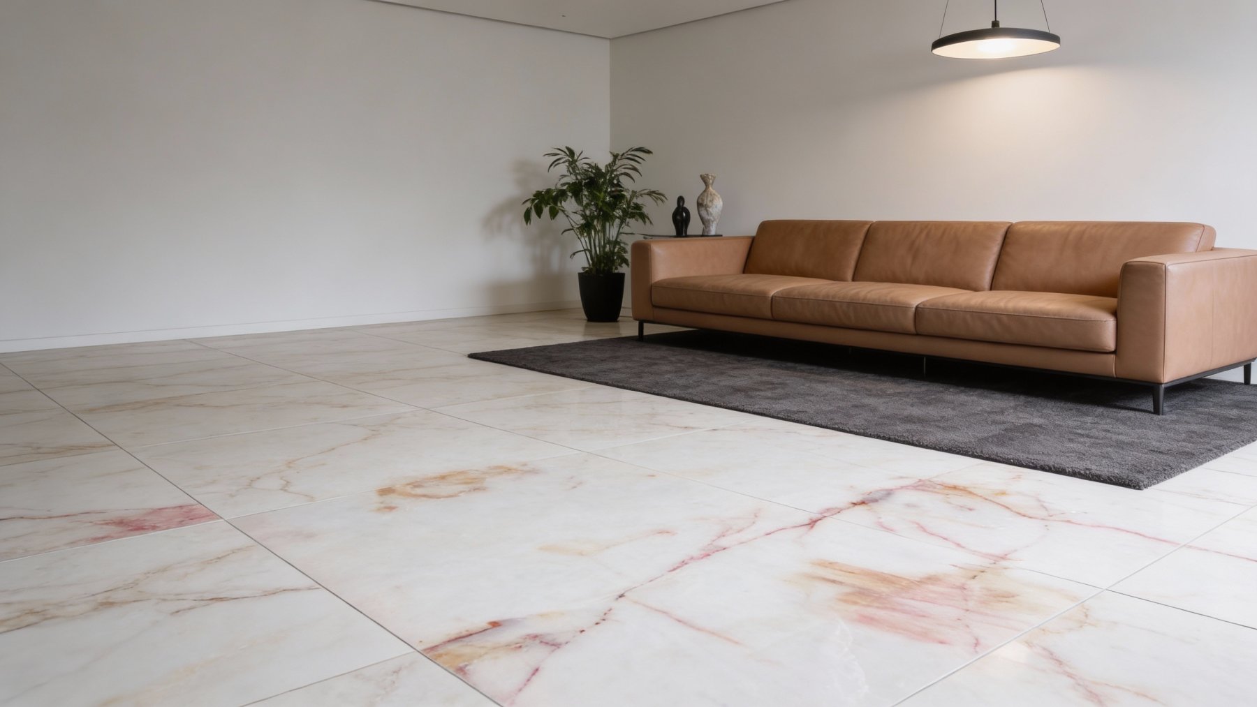 表面质感**细腻温润**,带有天然石材特有的柔和光泽,触感应是光滑莹润的。纹理边缘过渡自然,无生硬切割痕迹——红色纹路的色泽由深至浅渐变,与暖白色底色融合得恰到好处;石材整体透出含蓄的通透感,仿佛能感受到内部的温润质地,兼具自然野趣与高级细腻的视觉体验。