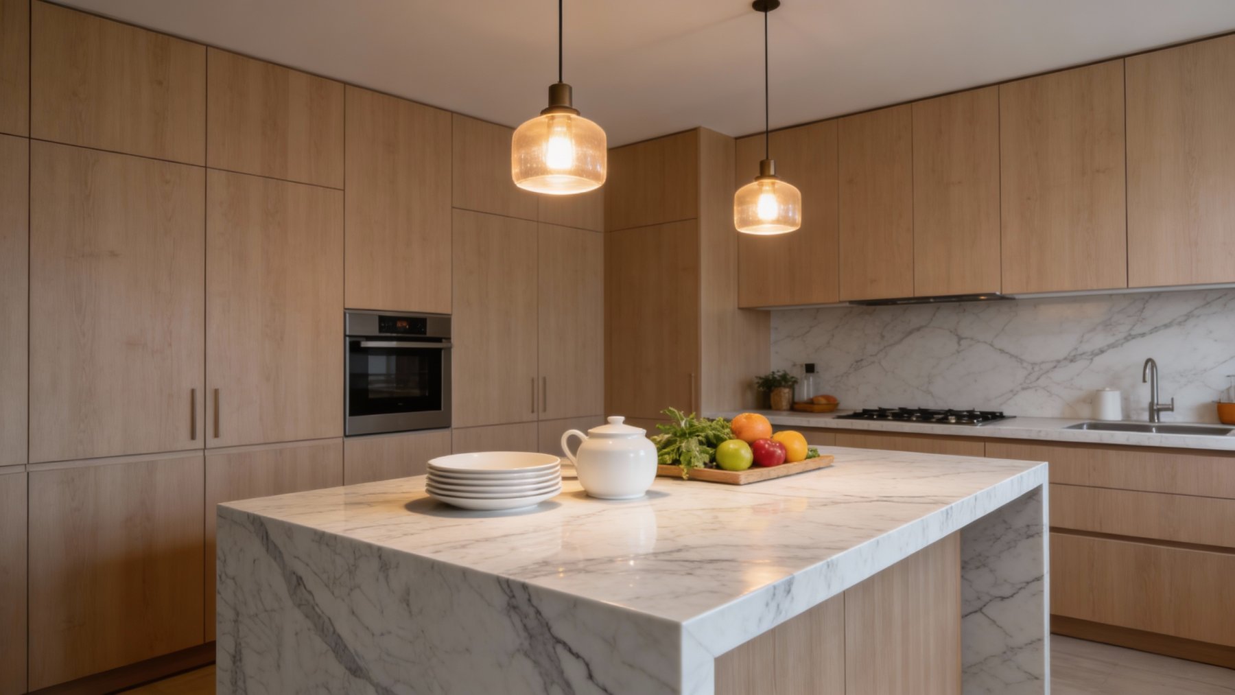 表面质感细腻温润,带有柔和的哑光光泽,触感应是光滑却不冰冷的亲肤质地;纹理边缘过渡自然,粗纹理处色泽稍深却与底色融合无痕,细碎纹理如毛细血管般分布均匀,增添了石材的生命力与立体感。整体既保留了天然石材的坚硬质感,又因肌理的细腻变化,呈现出高级柔和的视觉与触觉体验。