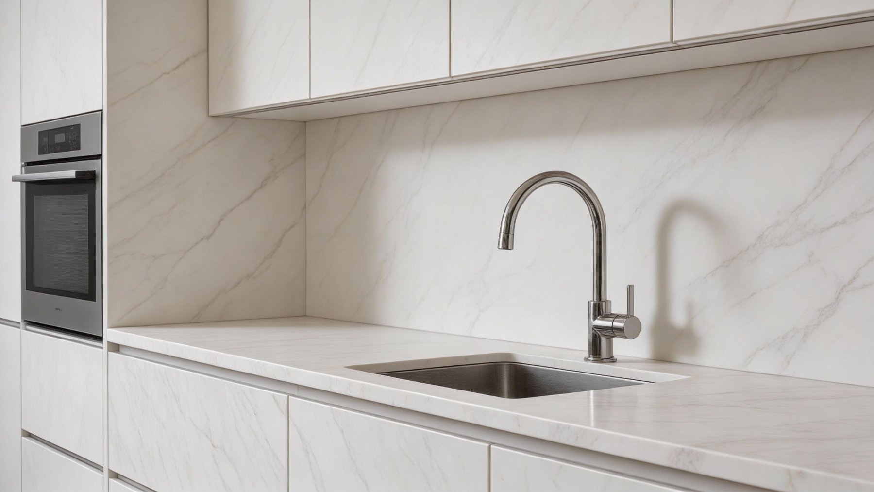 石材底色以**纯净柔和的浅白色**为主调,色调明亮却不刺眼,自带一种温润素雅的气质。并非单一的纯白,而是隐约透着淡淡的暖调,整体视觉感受干净清爽,宛如清晨未被惊扰的初雪,给空间奠定了简洁大气的基础。