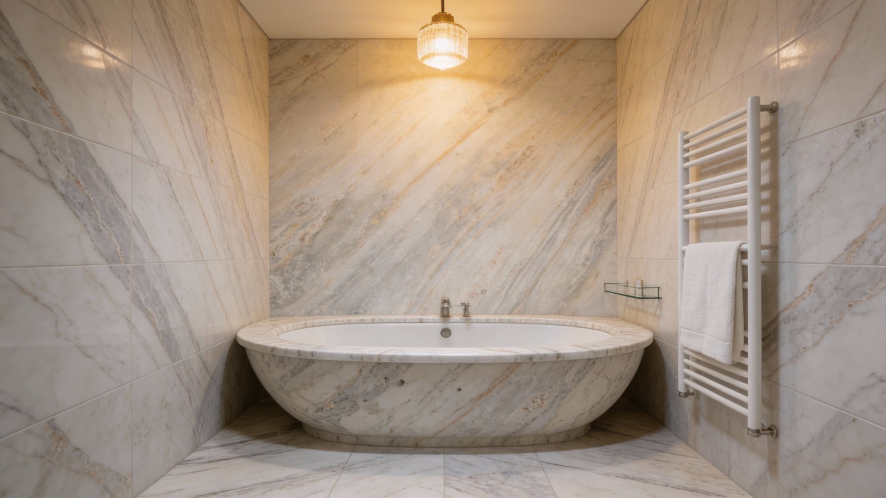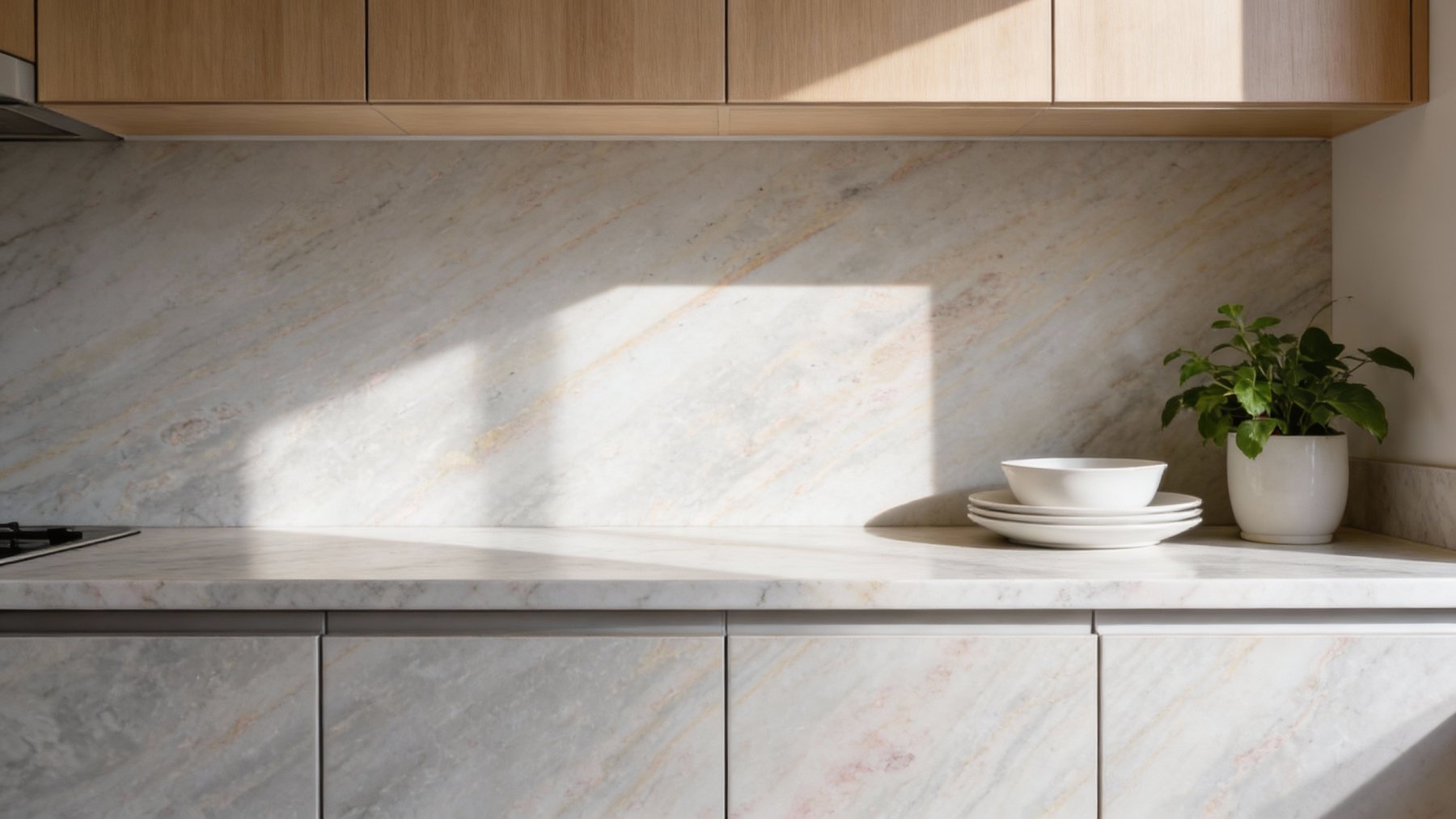 表面质感细腻平滑,带有天然石材特有的温润肌理,触感应是柔和亲肤的。光泽度偏向柔和半哑光,避免高光刺眼感,更显内敛高级。纹理间点缀着细小的浅灰、米黄色斑点及若隐若现的矿物颗粒,丰富细节层次,既保留天然石材的质朴感,又不失精致度,无人工雕琢的生硬痕迹,尽显自然真实的质感。