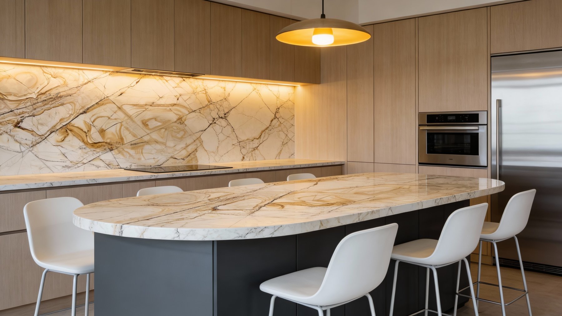 以柔和的浅米白为基底,色调温润雅致,如清晨薄雾般轻盈通透,既保留了天然石材的质朴感,又营造出干净舒朗的视觉氛围,为纹理的呈现铺垫了舒适的背景,让整体色彩不张扬却自带高级感。