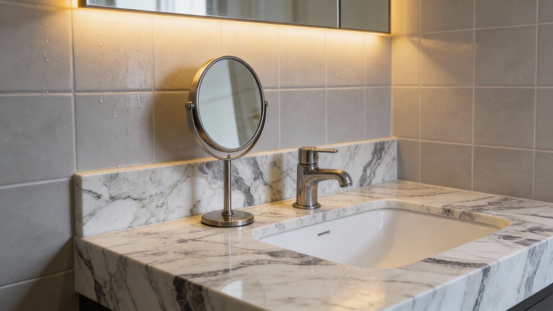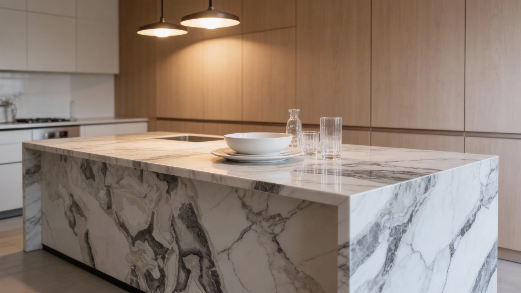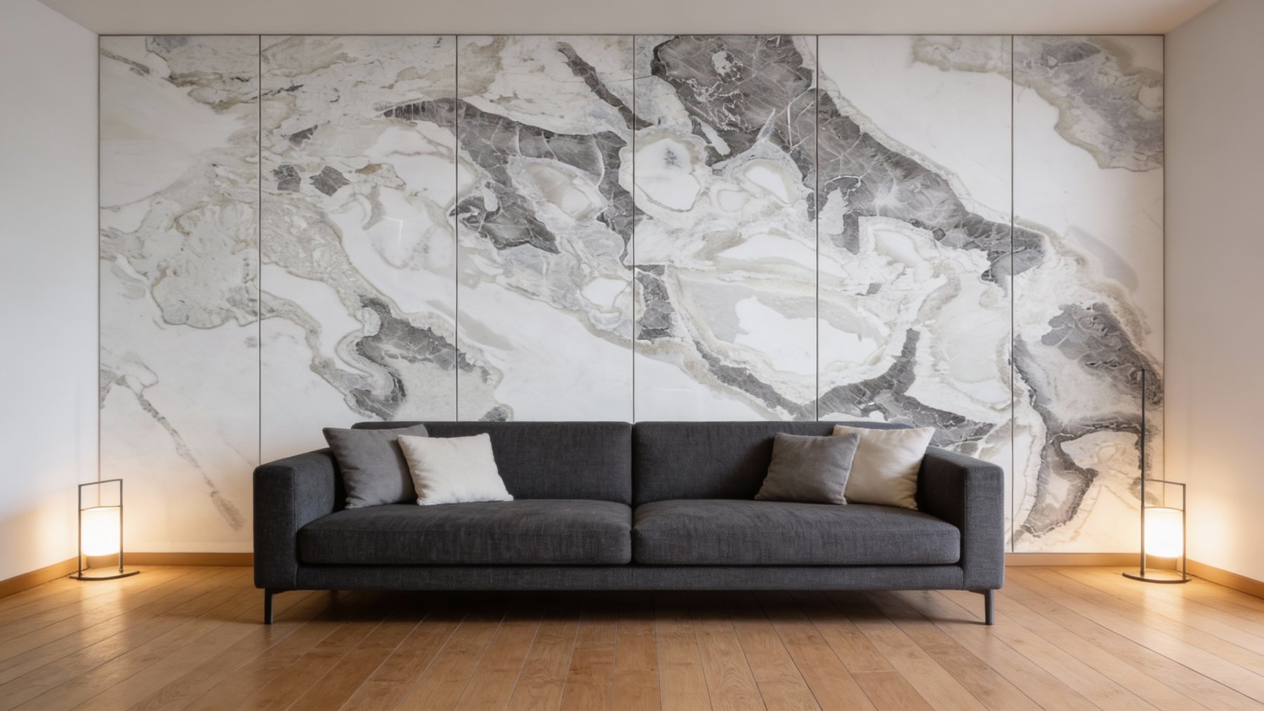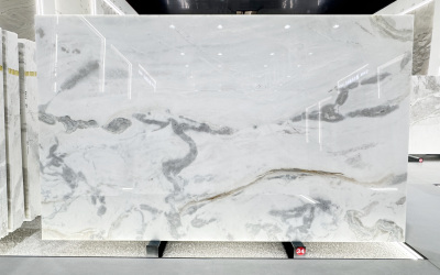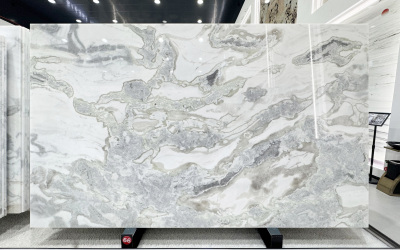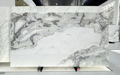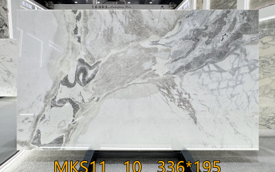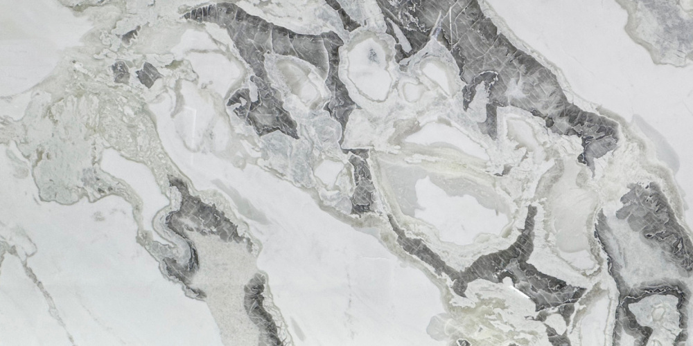 表面**细腻光滑如凝脂**,触感应温润如玉,光泽柔和(似柔光质感),不刺眼却自带高级感。细节处可见纹理边缘的自然过渡:深灰部分质感厚重凝练,浅灰与白色区域则带有些微通透感,仿佛蕴含着内敛的光泽;细小的纹理脉络如发丝般纤细却清晰,偶见的半透明肌理更添玉石般的温润通透。整体质感兼具天然石材的质朴与精致工艺的细腻,给人精致且有温度的视觉与触觉体验。
