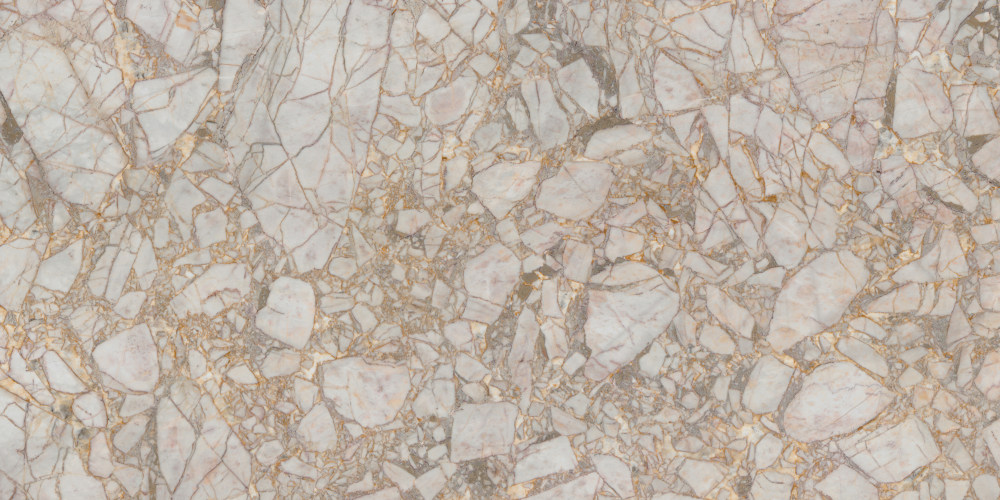 纹理呈现**“自然碎裂镶嵌”的独特形态**:由细密且颜色稍深(浅褐或灰褐)的天然脉络,分割出大小不一、边缘呈自然断裂感的不规则几何块面。块面形状错落无刻意规律,却相互呼应,似天然石材的结晶断层或冰裂纹的艺术化延伸——既有动态的视觉张力,又因色调统一而不失整体和谐,自带自然野趣与设计感。