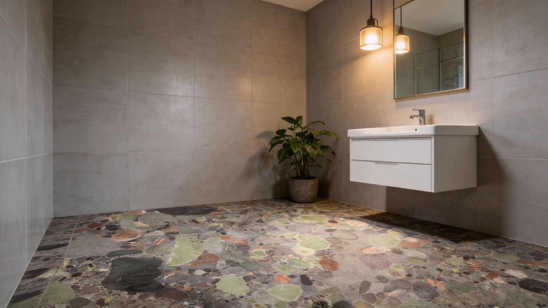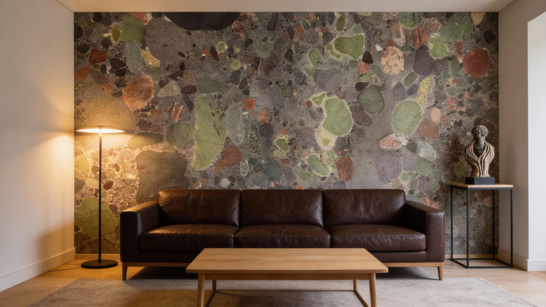 整体纹理似天然砾岩经地质凝合而成,无连续线条,却因颗粒的圆润感与色彩配比显得错落有致,兼具动态感与秩序感。