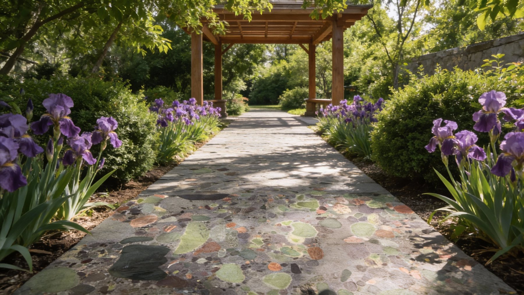 纹理呈现**天然砾石状的混杂散布形态**,由大小不一、形态圆润的多色矿物颗粒随机错落组成: