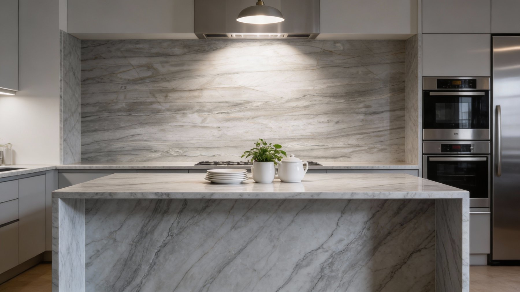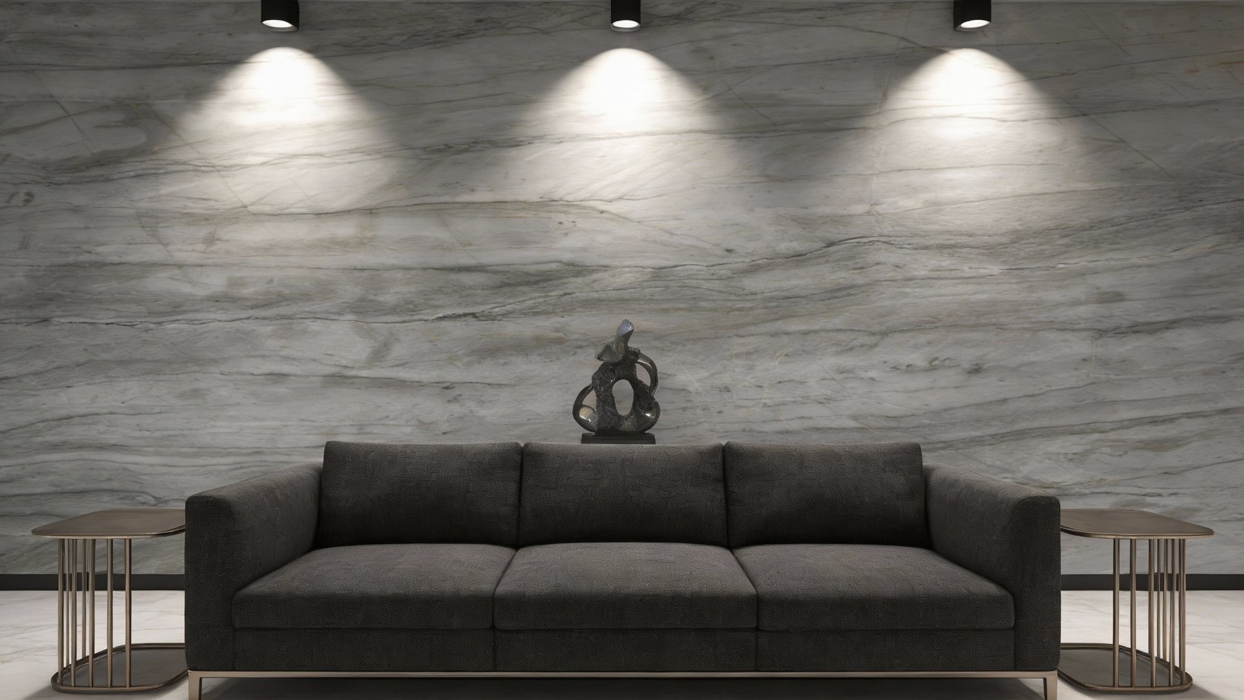 表面质感**细腻温润**,呈半哑光状态——触感应平滑却暗含纹理的细微起伏,无强烈反光却自带柔和光泽;纹理过渡自然柔和,无生硬边界,局部可见细小的矿物颗粒与浅淡斑点,为石材注入天然的肌理层次。整体兼具石材的坚硬质感与柔和触感,质朴中透着高级,仿佛能触摸到自然沉淀的岁月温度。