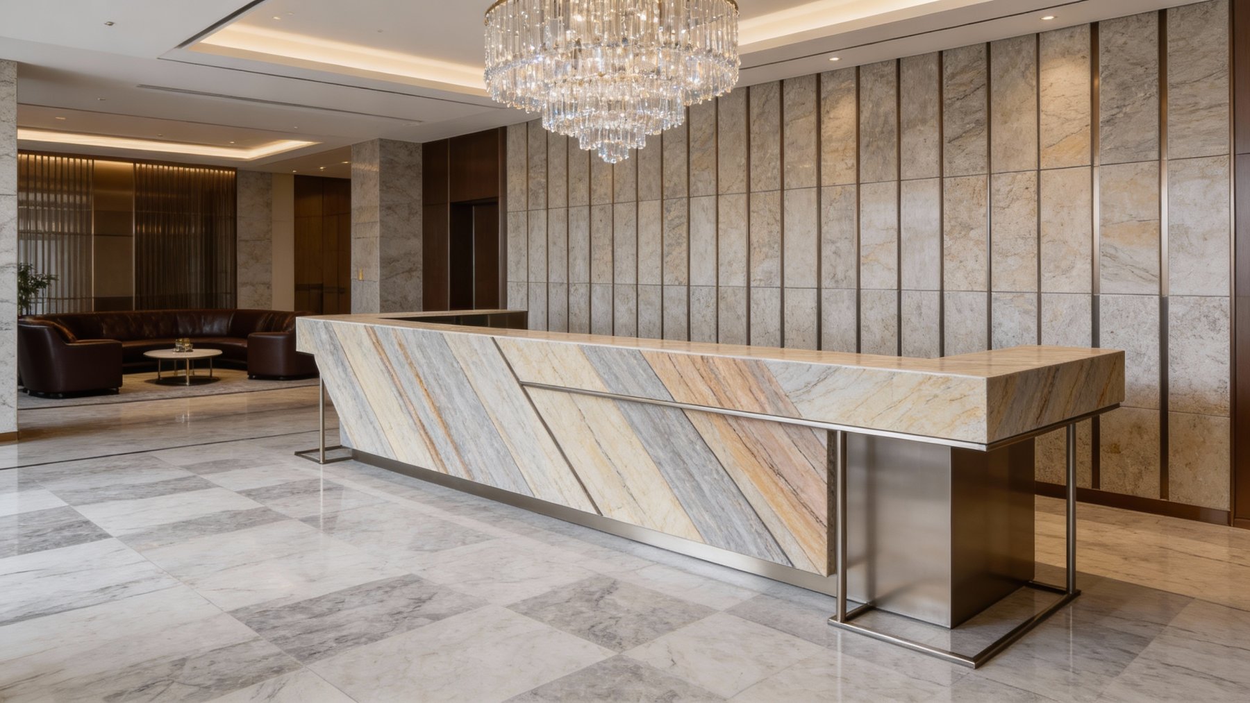 **纹理形态**:纹理以流畅舒展的斜向线条为主,呈细长条状分布,颜色从浅棕褐到深灰渐变过渡;线条粗细交错、疏密有致,间杂极细的深色发丝纹点缀,如同天然岩石层理般富有流动韵律感,连贯且优雅,无断裂或突兀的纹理断层。