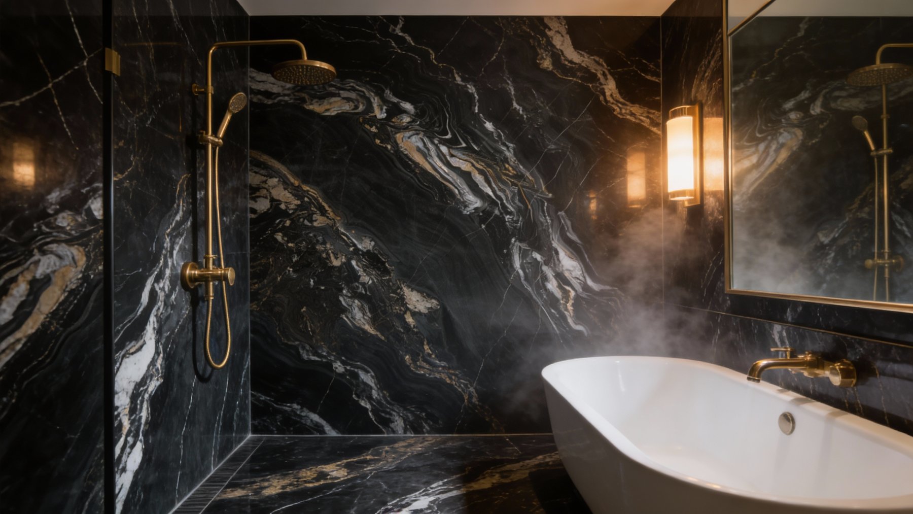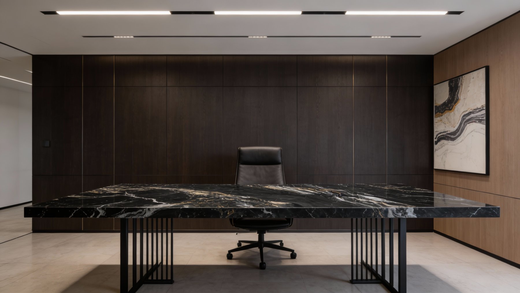 以深邃浓郁的墨绿为核心基底,间杂着近黑的暗调肌理,整体色调沉稳厚重,如静谧幽深的森林秘境,又似夜幕下的墨色湖面,散发着低调而奢华的高级感,为空间奠定沉稳大气的视觉基调。