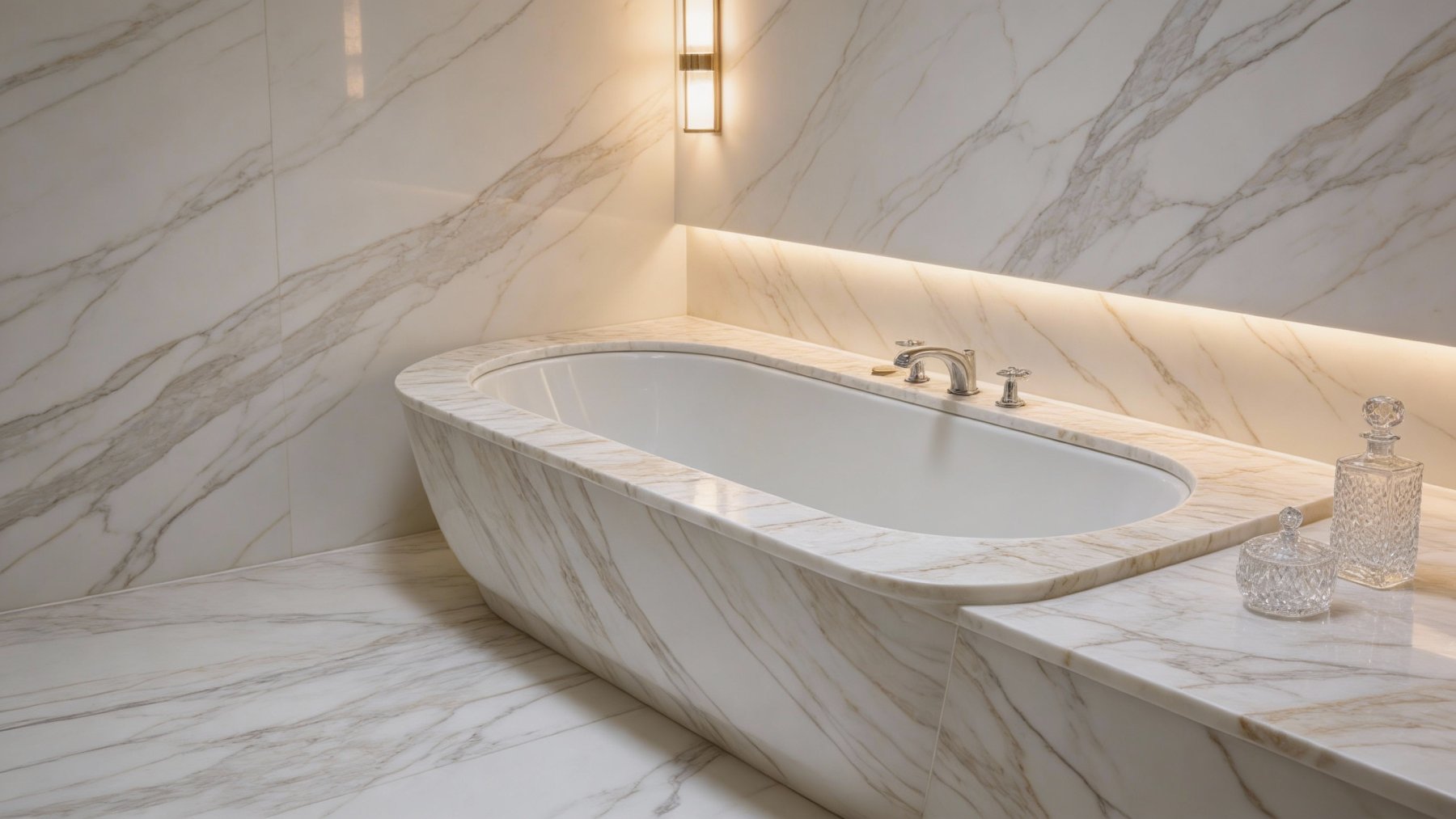 这款石材以**暖调柔白**为核心底色,融入浅奶油般的温润质感,色调纯净却不生冷。既保留了白色系的明亮通透,又因暖感的微妙注入,避免了单调与冷冽,为空间奠定了温馨雅致、清透舒适的视觉基础。