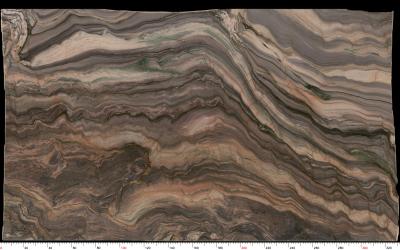 纹理呈现**自然流动的蜿蜒曲线**,似亿万年地质运动中岩层褶皱的舒展痕迹,又如江海波浪般交织缠绕,形成层叠起伏的漩涡状与波浪状纹路。纹理粗细交错、疏密有致:时而密集卷曲,如漩涡般聚拢;时而舒展延伸,似波浪般漫开,充满动态韵律感,仿佛将地质变迁的轨迹凝于一石,尽显自然造物的鬼斧神工。
