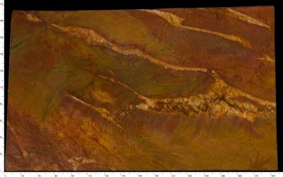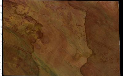 纹理呈现出**自然流动的不规则形态**,似矿物沉积的层理脉络,又如水波晕染的柔和曲线。大块暖棕与赭黄色块相互嵌套,边缘以模糊晕染的方式过渡,无生硬界限;部分区域可见细密的脉络状浅纹穿梭其中,与深棕斑块形成层次对比。整体纹理富有动态感,宛如大地被自然冲刷后的肌理画卷,随性却不失层次。
