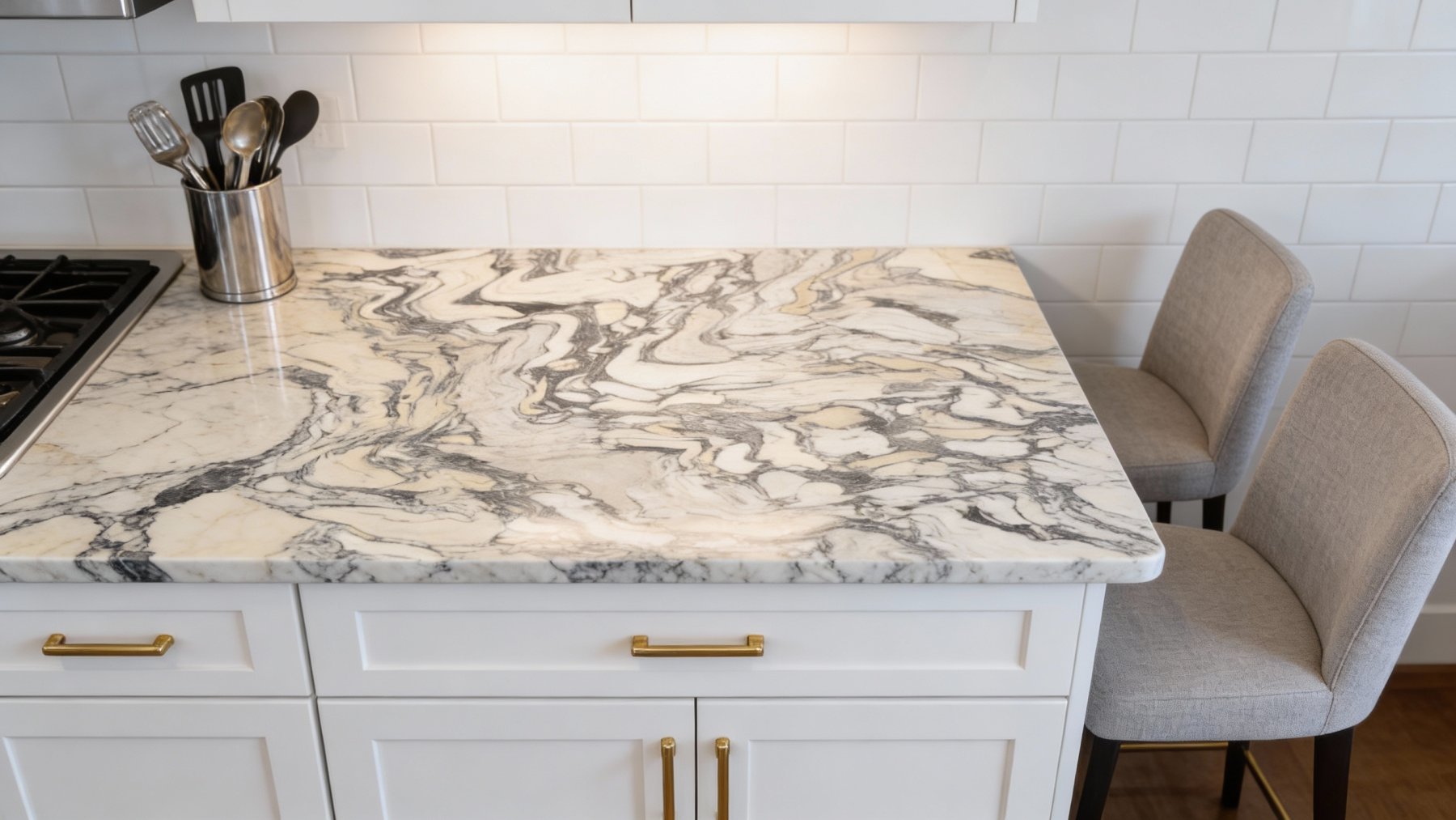 石材底色以**柔和温润的浅米白与浅灰色为主调**,间杂淡淡的暖米色晕染,整体色调清新雅致且自带暖意。浅色系基底弱化了视觉压迫感,既保留了天然石材的质朴感,又通过暖调晕染增添了空间的温馨氛围,适配多种风格的空间基调。
