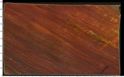 纹理呈现**横向层状流动**的形态,似地质演化中形成的层理结构:深浅不一的红棕、深褐条纹为主脉,间杂细碎的橄榄绿、暗黄色调细线交错层叠,走向规律却不失灵动变化,无生硬割裂感,整体如波浪般柔和起伏,层次丰富且富有韵律感。