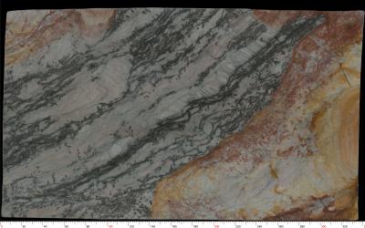 纹理以不规则的脉络状、枝蔓状为主,深灰近黑的细密线条如植物根系般交织蔓延,与暖棕红的条带状区域、浅底色基底相互渗透;整体纹理呈斜向流动趋势,兼具层理感与随机感,似地质沉积或矿物结晶的自然轨迹,既无刻意规则的束缚,又暗含自然生长的韵律,视觉上富有动态张力。