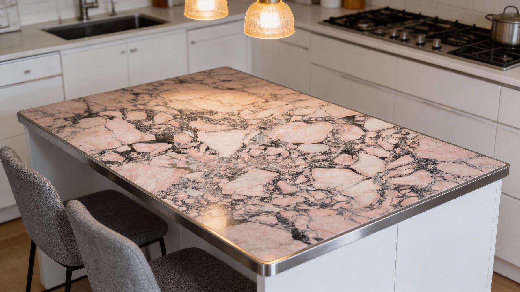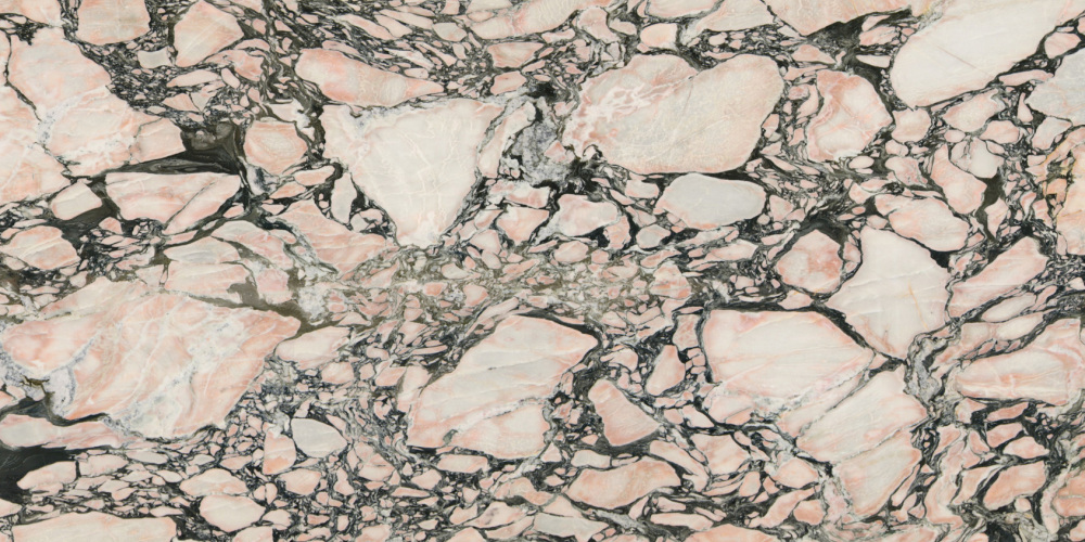 纹理以**不规则的浅粉色与灰白色斑块**为主,形态自由随性: