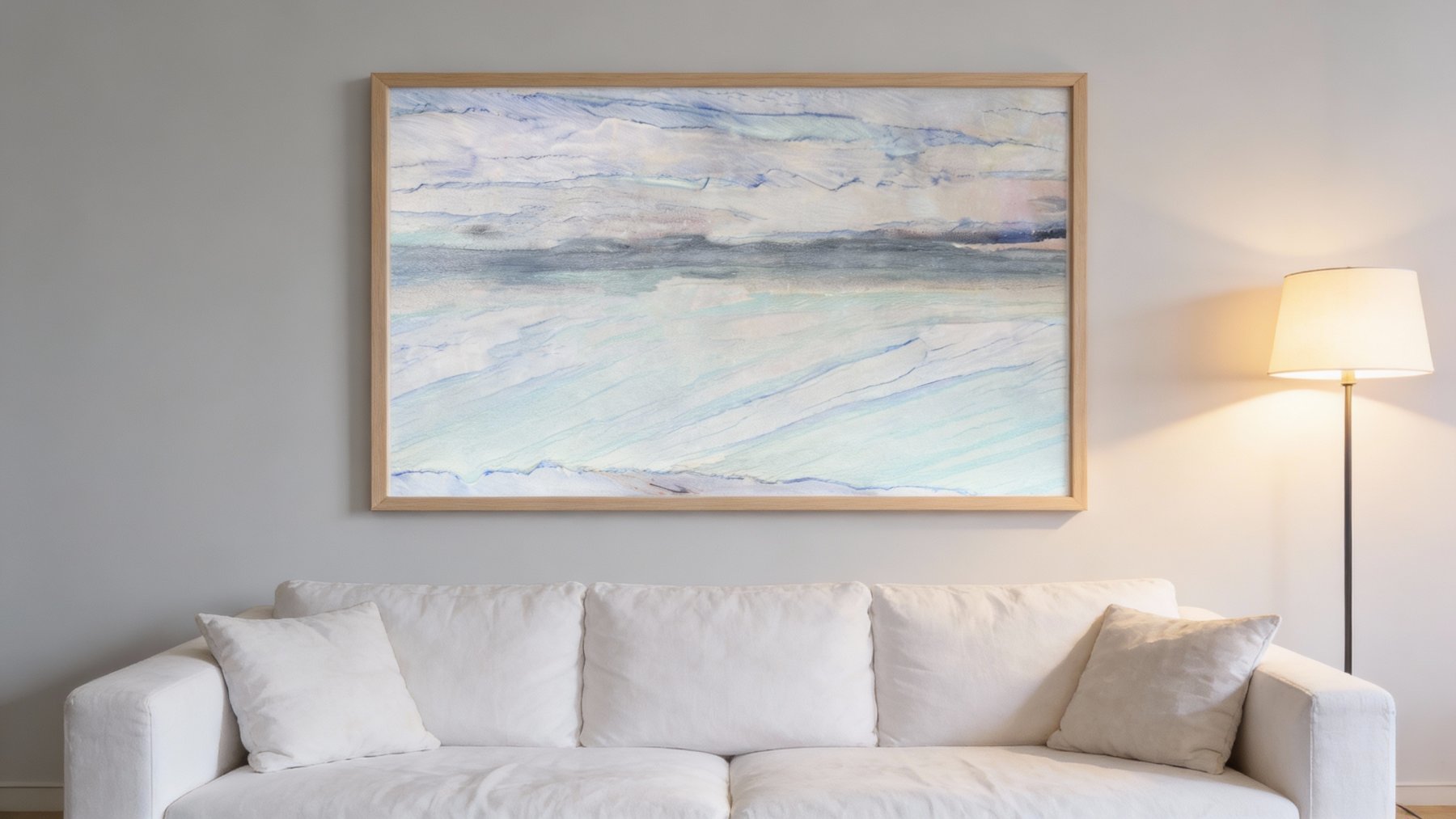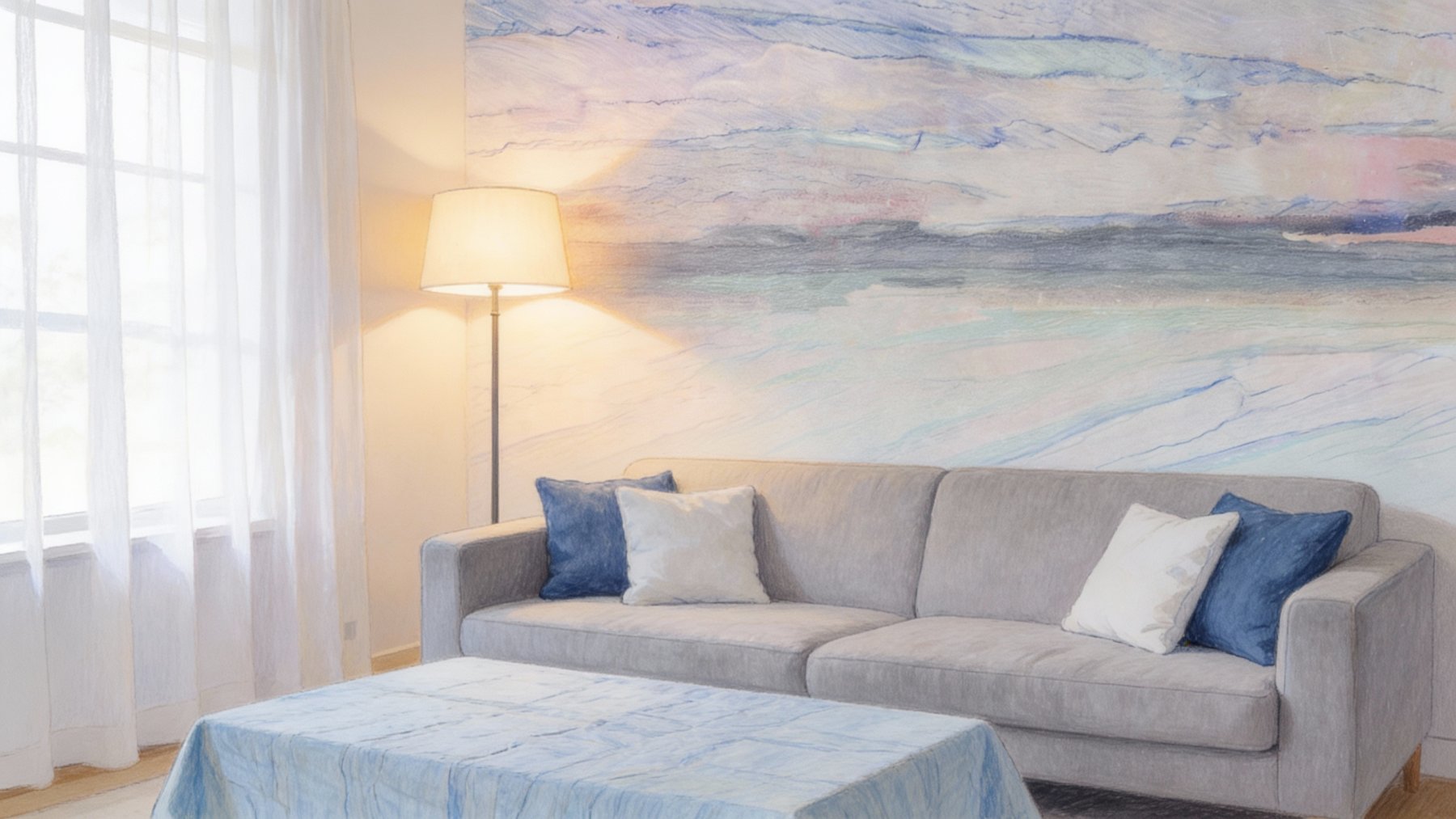 表面肌理细腻温润,颜色过渡自然晕染,无明显粗糙颗粒感;纤细清晰的纹理线条间,可见色彩的柔和交融(如浅蓝与灰白的渐变、淡绿与浅蓝的叠合),触感应顺滑且带些许温润光泽,细节处尽显雅致灵动的自然肌理,似藏着时光沉淀的柔和温度。