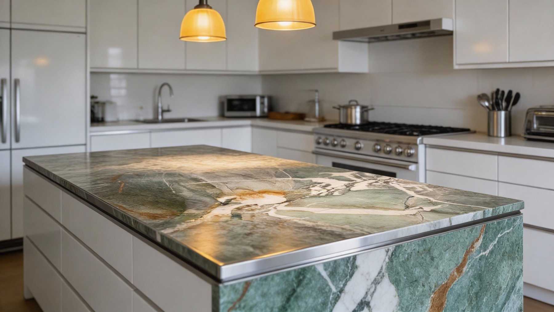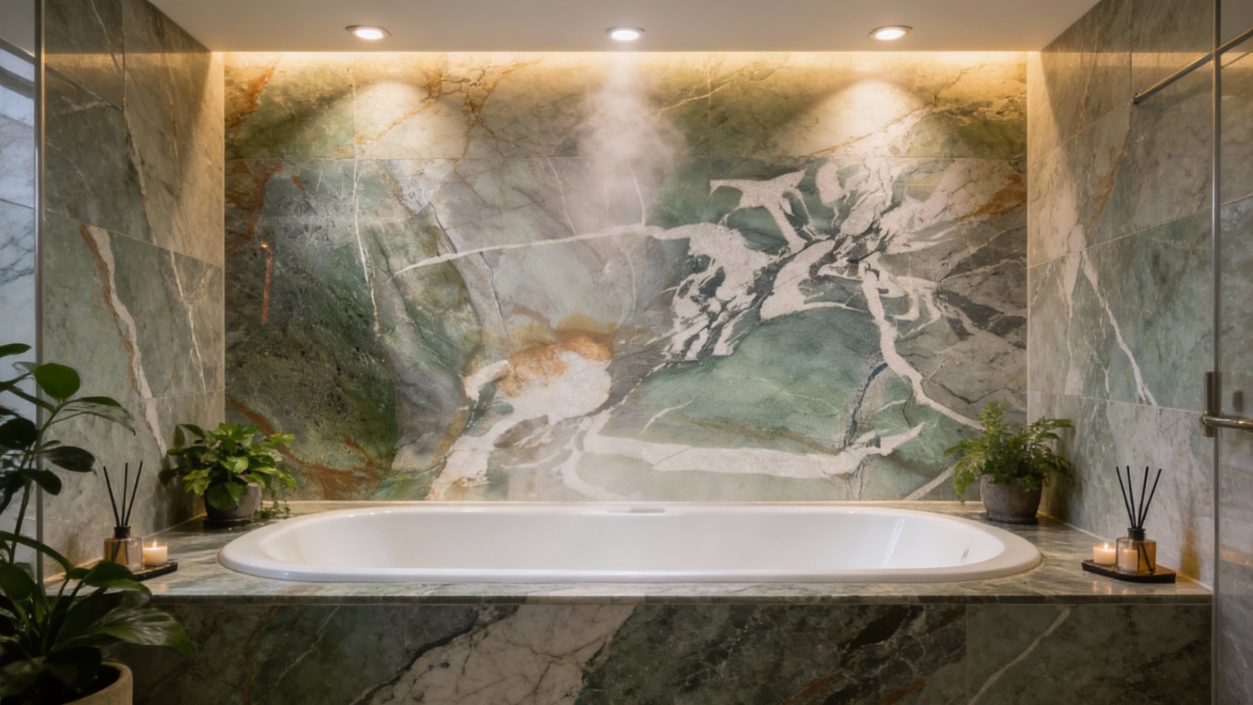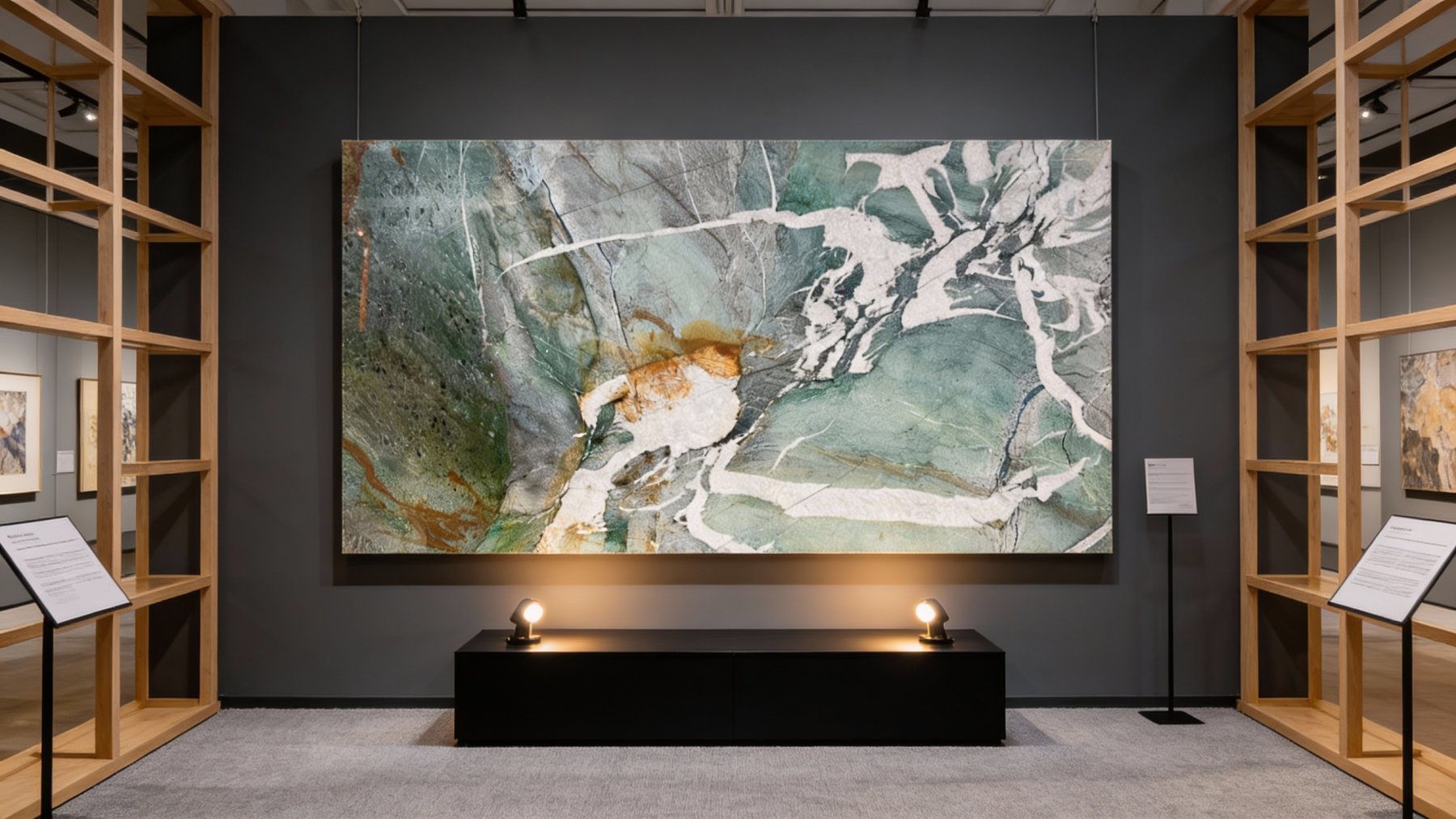 以清雅的**灰绿色**为核心基底,色调层次丰富且过渡自然——从浅青灰绿的朦胧感,到深墨绿的沉稳感渐变交织,既保留了天然石材的厚重质感,又透着一丝灵动的清雅气息,宛如被岁月浸润的山林幽潭底色,沉稳中暗含生机,给人静谧而治愈的视觉感受。