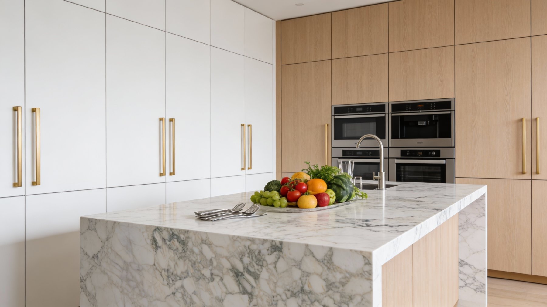 这款石材的底色以**温润的乳白色**为主调,基调纯净柔和,略带自然的暖感,如同凝脂般细腻通透,既不生冷也不过于跳脱,为后续纹理的铺陈提供了干净雅致的“画布”,传递出优雅内敛的气质。