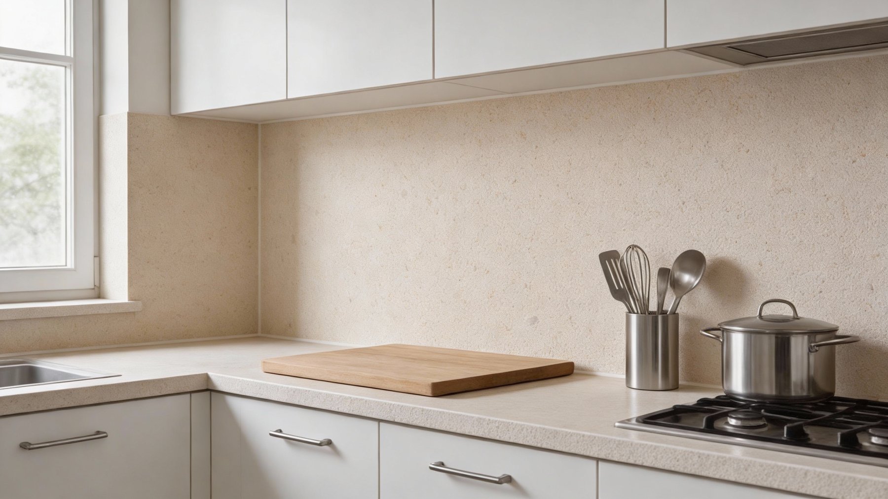 表面触感温润细腻,带有轻微的天然矿物颗粒感,呈现哑光或半哑光质感,无刺眼反光。细节处可见零星细小的矿物斑点,增添了质朴的自然气息,既保留了天然石材的原生质感,又兼具顺滑舒适的触摸体验,整体质感柔和而富有温度。