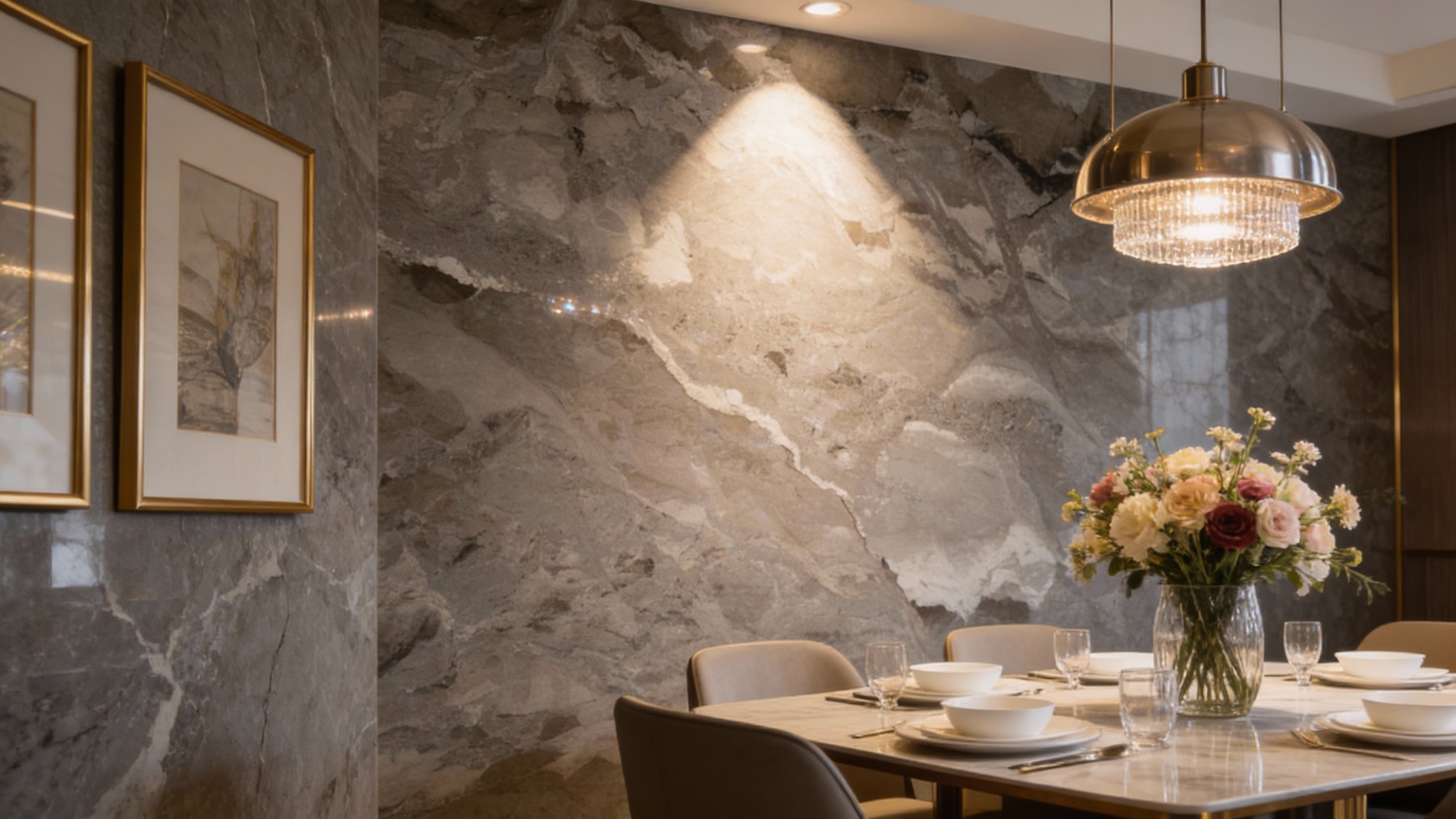 ### 底色基调 这款石材的底色基调为**柔和的中性灰褐色系**,以低饱和度的浅褐灰为基底,自然晕染着浅米白、深灰褐的层次色块,整体色调温润内敛,属于大地色系中的百搭款,既无冷硬感也不张扬,自带沉静舒缓的视觉氛围。### 纹理形态 纹理呈现**天然随性的脉络状与斑块状交织**:细密的浅白色线条以不规则走向散布,如同石材内部矿物质沉淀形成的自然裂隙,断续却连贯;大小不一的浅米白斑块错落其间,与深灰褐色基底形成柔和对比,无刻意规律却错落有致,仿佛岩层经岁月侵蚀后的自然肌理,流动感中带着质朴的厚重感。### 细节质感 质感上偏向**内敛的哑光致密感**:深浅色块过渡自然,无生硬边界,浅白纹路边缘略带模糊晕染,似天然形成的渐变效果;表面平滑中隐有细微的天然颗粒肌理,触摸时能感受到石材的致密厚实,无刺眼光泽,却自带温润质朴的触感,仿佛沉淀了岁月的质感,既细腻又不失天然石材的原始张力。