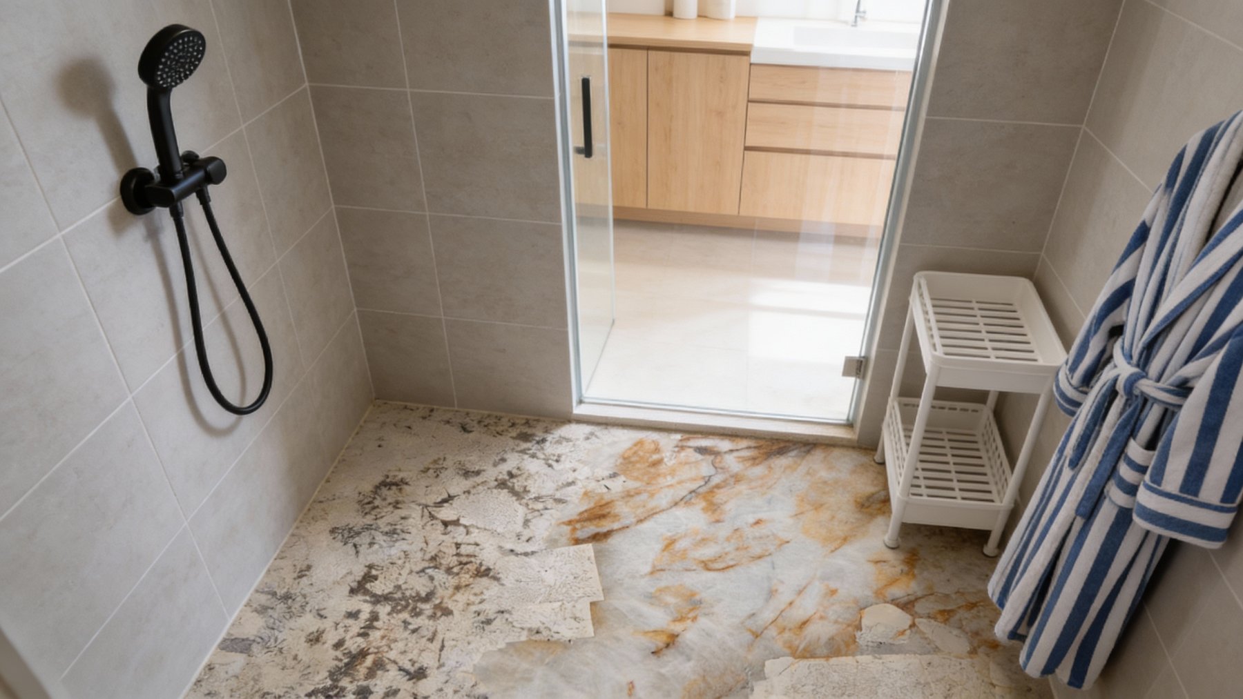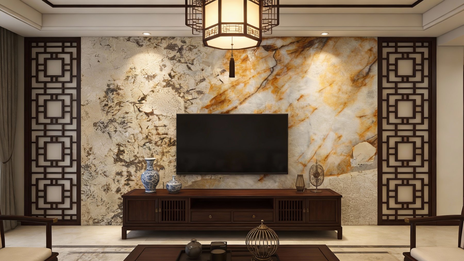 ### 底色基调 这款石材的底色基调以**柔和的浅米白与灰白交织**为主,暖调的浅米白为基底,间杂着淡淡的灰白晕染,无强烈色彩冲突,整体呈现出温润雅致的暖柔氛围,如同清晨薄雾笼罩的浅滩,给人平和舒适的视觉初印象。### 纹理形态 纹理层次丰富且形态多变,兼具“动”与“静”的对比: - **流动脉络**:暖棕(或橙棕)色调的纹理如大地脉络般蜿蜒舒展,线条或粗或细、或曲或直,随性流淌,似自然溪流般灵动飘逸; - **斑驳沉淀**:深灰、灰褐色的斑点与小块状纹理错落分布,如同天然矿物的沉淀痕迹,与暖调脉络相互穿插呼应; 整体纹理无刻意规律,尽显自然生长的随性野趣,动静交织间形成富有故事感的层次。### 细节质感 石材表面质感**细腻温润,内敛高级**: - 视觉上,暖棕纹理边缘过渡自然(时而模糊晕染、时而清晰利落),斑驳处颗粒感柔和不突兀,整体呈现柔和的半哑光光泽,无刺眼反光; - 触感上,表面平滑中蕴含天然纹理的细微起伏,仿佛能触摸到岁月沉淀的温润肌理,既保留了天然石材的质朴感,又不失细腻顺滑的舒适体验。