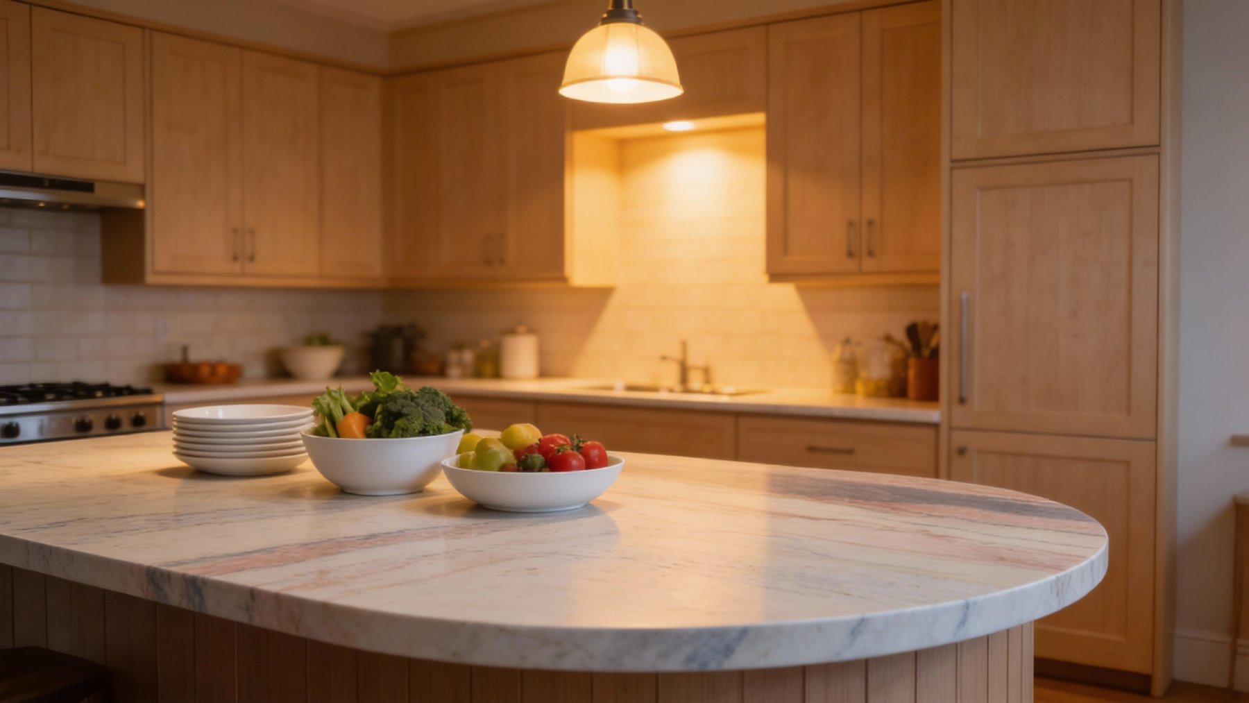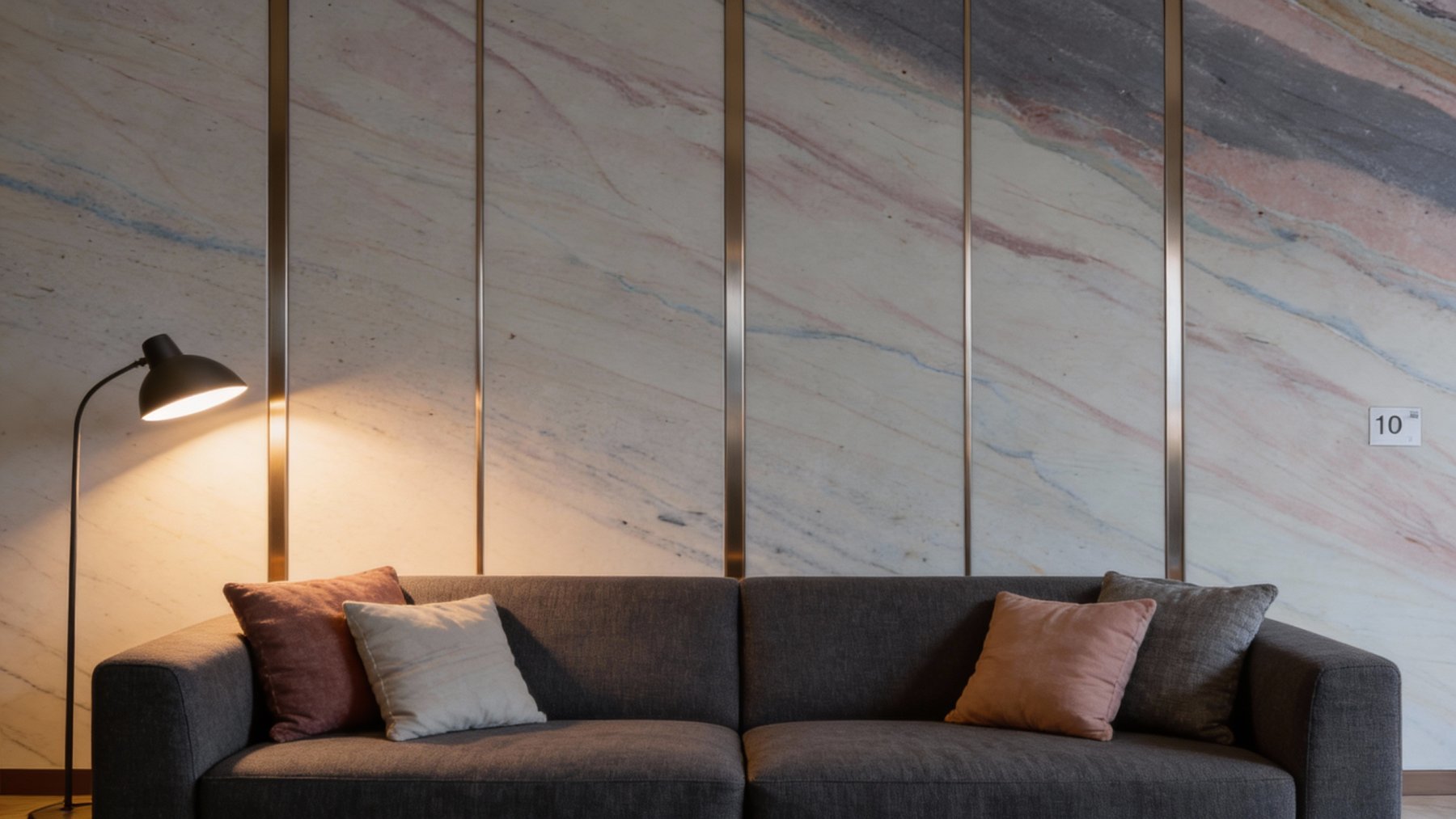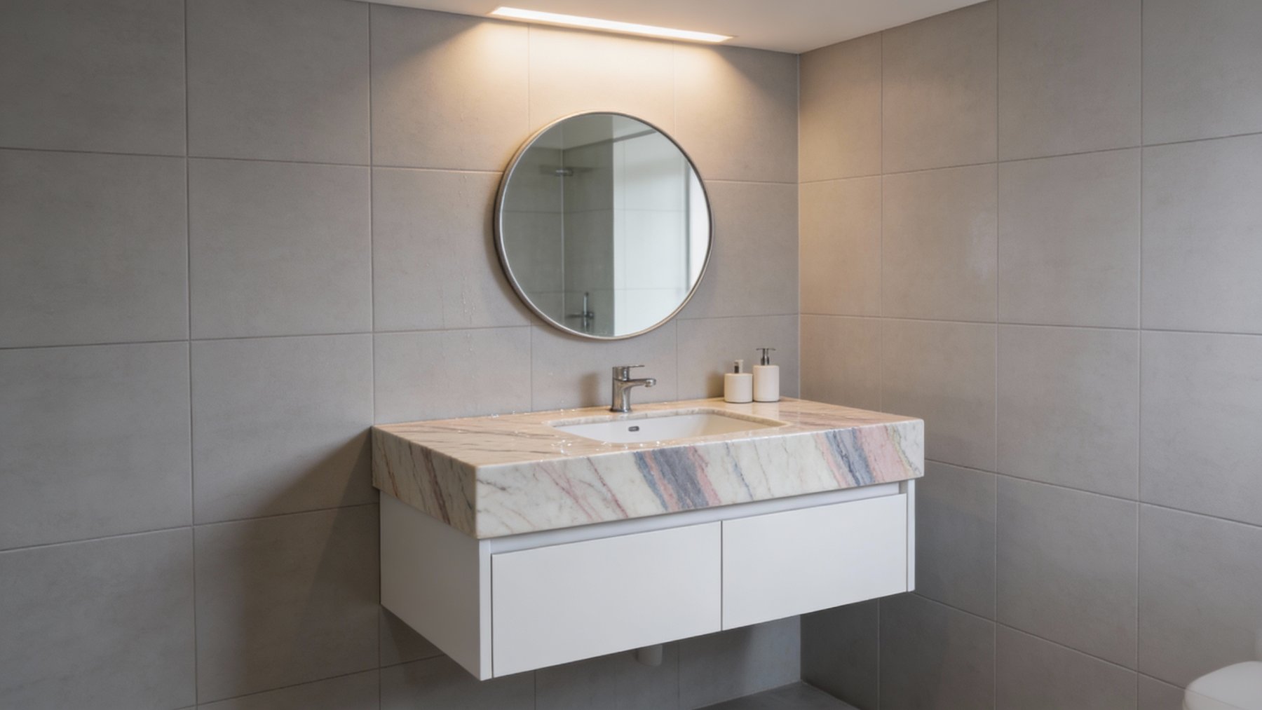 ### 底色基调 这款石材的底色以柔和的浅米白色为核心基调,间杂着极淡的灰白色调过渡,整体呈现出温润雅致的暖感底色。色彩饱和度低,无强烈视觉冲击,传递出平和舒适的氛围,如同清晨薄雾般轻盈柔和。### 纹理形态 纹理以**流动丝状脉络**为主要形态,色彩层次丰富且自然交织:淡粉色纹理如晕染的霞光般纤细飘逸,灰蓝色纹理似浅溪般蜿蜒舒展,深灰紫调纹理则作为点缀,形成深浅对比的韵律感。纹理线条粗细不一,时而纤细如发丝,时而宽化为柔和色带,分布随性却和谐,仿佛矿物元素在地质作用下自然流动的痕迹,充满有机的韵律美与自然野趣。### 细节质感 石材表面经抛光处理后,呈现出**细腻光滑的温润光泽**,触感应是坚实且顺滑的。纹理色彩过渡自然无生硬边界,底色中隐约可见细微的矿物颗粒或淡色斑点,为整体质感增添了自然肌理层次,避免了单调感。整体质感兼具石材的厚重坚实与色彩纹理赋予的温婉雅致,既有天然石材的质朴,又不失精致感。