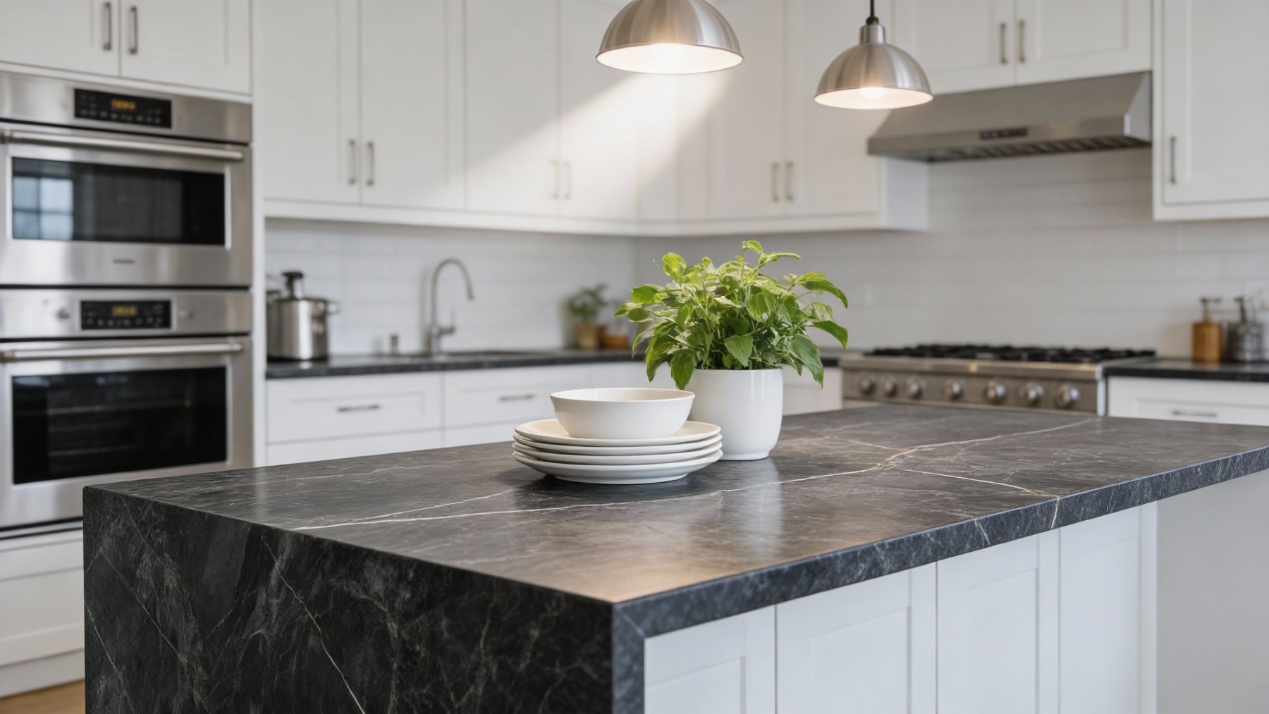 表面经精细抛光处理,**触感平滑温润**,光泽内敛而富有层次(非刺眼高光,而是柔和的镜面光泽);纹理线条以浅灰、米白或淡金调为主,与深黑底色形成柔和却鲜明的对比——线条边缘时而清晰锐利(如天然裂纹的利落感),时而朦胧晕染(似矿物质自然晕开的细腻),既保留了石材的坚硬质感,又通过抛光赋予其细腻奢华感,整体兼具“天然粗犷的原始性”与“人工打磨的精致感”,视觉层次丰富,触感应温润平滑。