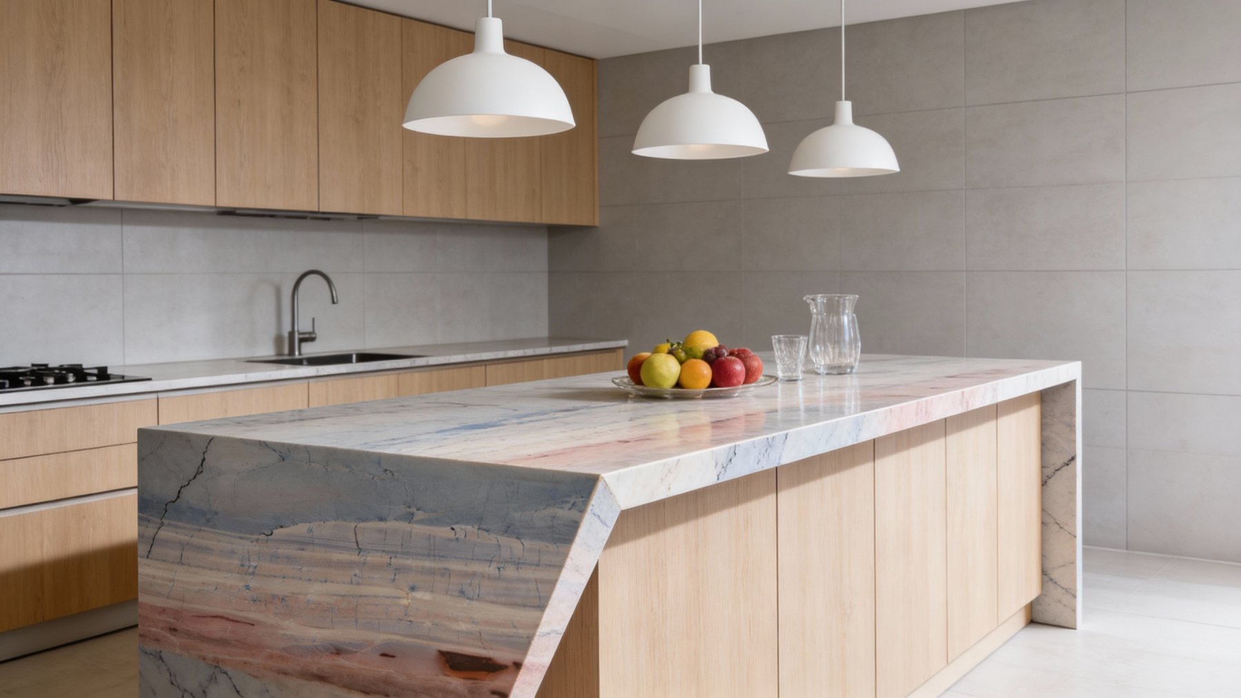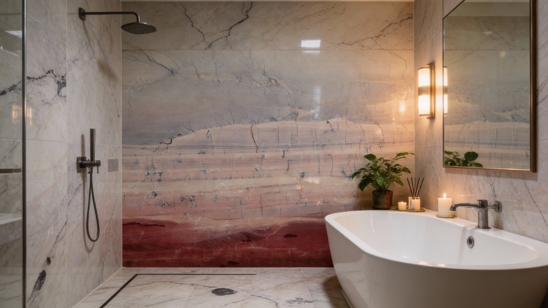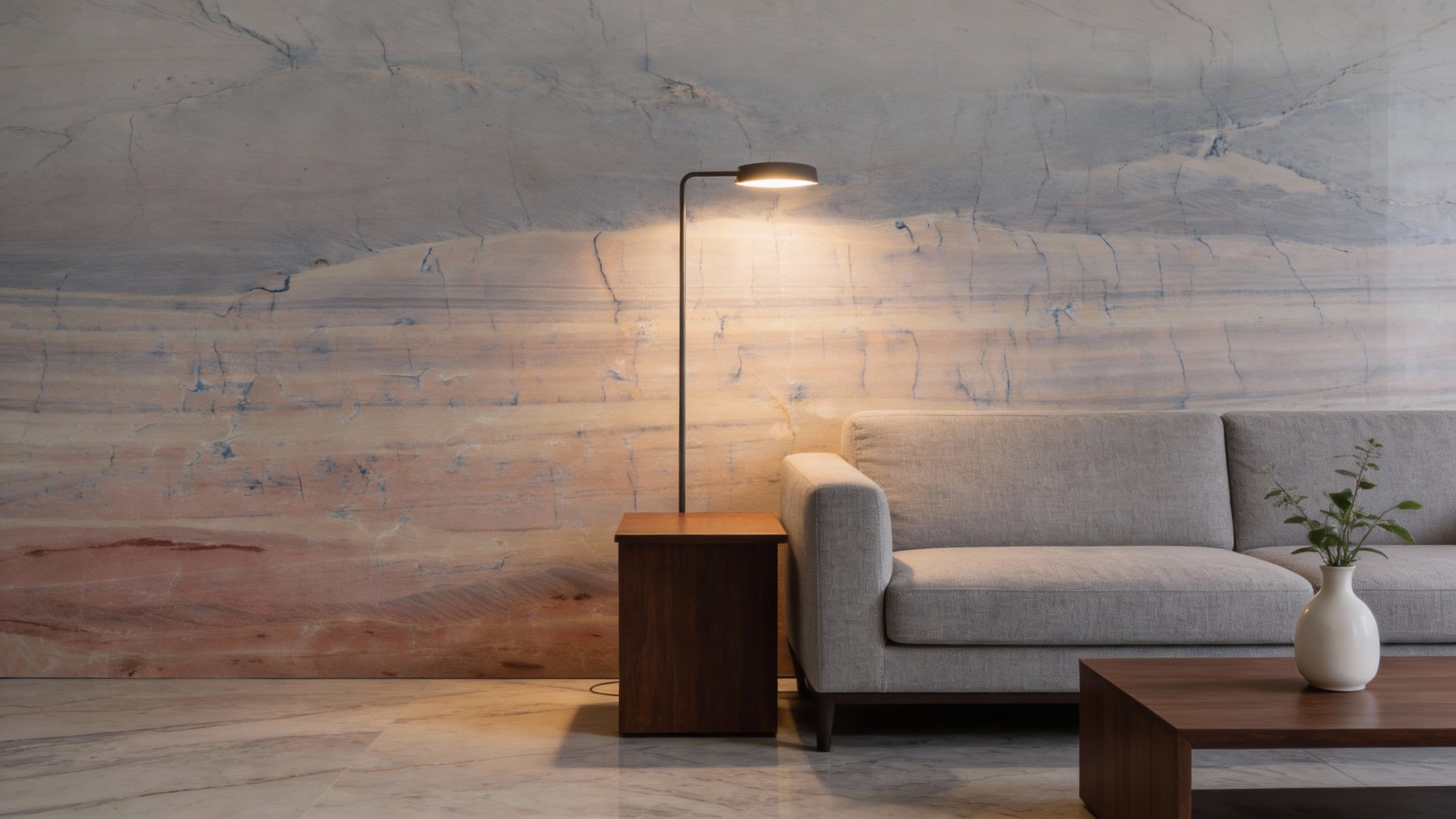 ### 底色基调 这款石材的底色以**暖棕灰与米白交织的渐变层次**为主调:上部是柔和的灰褐底色,中部过渡为浅米白色调,下部则融入温润的红棕色泽,整体色调自然衔接,既保留了石材的质朴感,又因暖调注入而显得沉稳雅致,无生硬割裂感。### 纹理形态 纹理呈现**垂直裂隙与水平层纹交错**的自然形态:垂直方向分布着不规则的细裂纹,线条深浅不一、粗细交错,似风化侵蚀留下的岁月痕迹;横向则隐现浅淡的层状条纹,与垂直纹理相互呼应,整体纹理疏密有致,兼具沧桑的肌理感与灵动的流动韵律,仿佛记录了地质沉积的自然过程。### 细节质感 表面为**哑光质感**,触感应带有细微的自然凹凸肌理,无过度抛光的亮面感;裂纹处的深色线条(似矿物质沉淀痕迹)与底色形成细腻对比,层纹间的色调交融自然,细节处可见不同矿物质的细微颗粒感,整体质感古朴厚重,每一处肌理都彰显出天然石材的原始个性与独特岁月感。