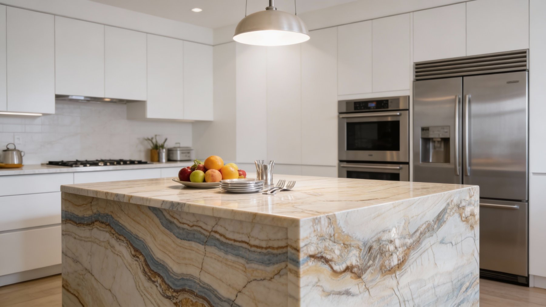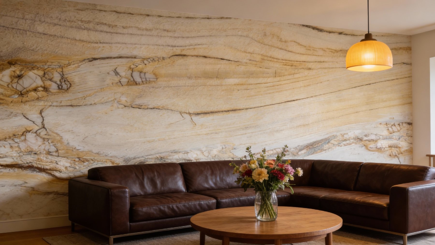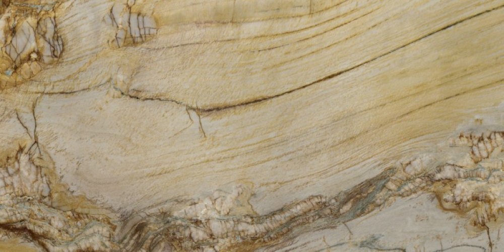 ### 底色基调 以浅米白与暖黄色为主基调,间杂淡灰与浅褐的微妙过渡,整体色调柔和温润,如晨曦下的沙滩般自然质朴,既保留了大地色系的沉稳,又因色调的渐变呈现出轻盈的呼吸感。### 纹理形态 呈现出**层叠交错的流线型纹理**,似地质沉积时的波浪痕迹,粗细不一的暖褐色条纹与底色交织,形成蜿蜒起伏的视觉韵律;同时点缀着不规则的深褐脉络状裂纹与斑驳色块(如右下角的浅灰褐斑块、左上角的细密节理),如大地肌理的天然镌刻,层次丰富且富有动态感,仿佛能窥见千万年地质演变的流动轨迹。### 细节质感 表面兼具**细腻温润与自然粗糙**的双重质感:流线纹理处平滑过渡,触之细腻如打磨后的玉石;而裂纹与斑驳区域则带有轻微的凹凸肌理,似天然形成的“时光印记”,既保留了石材的厚重坚实,又因色调柔和与纹理的灵动,弱化了冷硬感,传递出温润质朴的天然气息。
