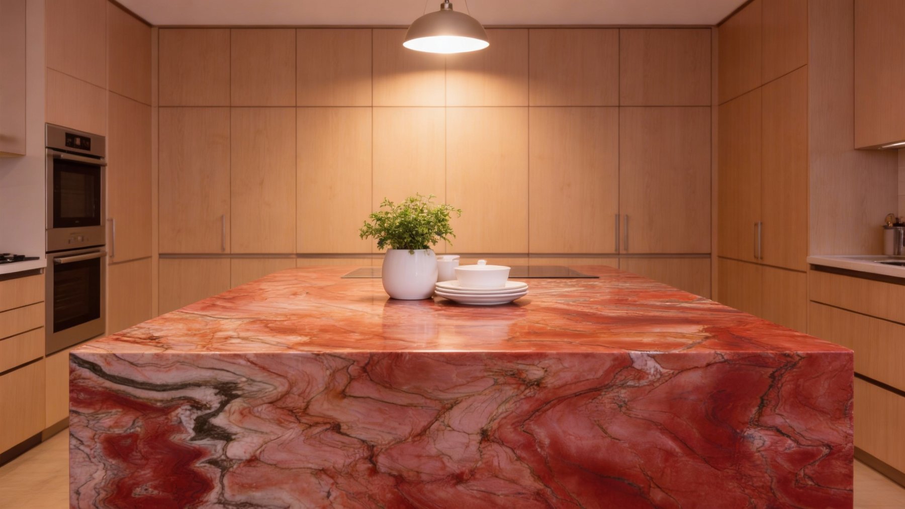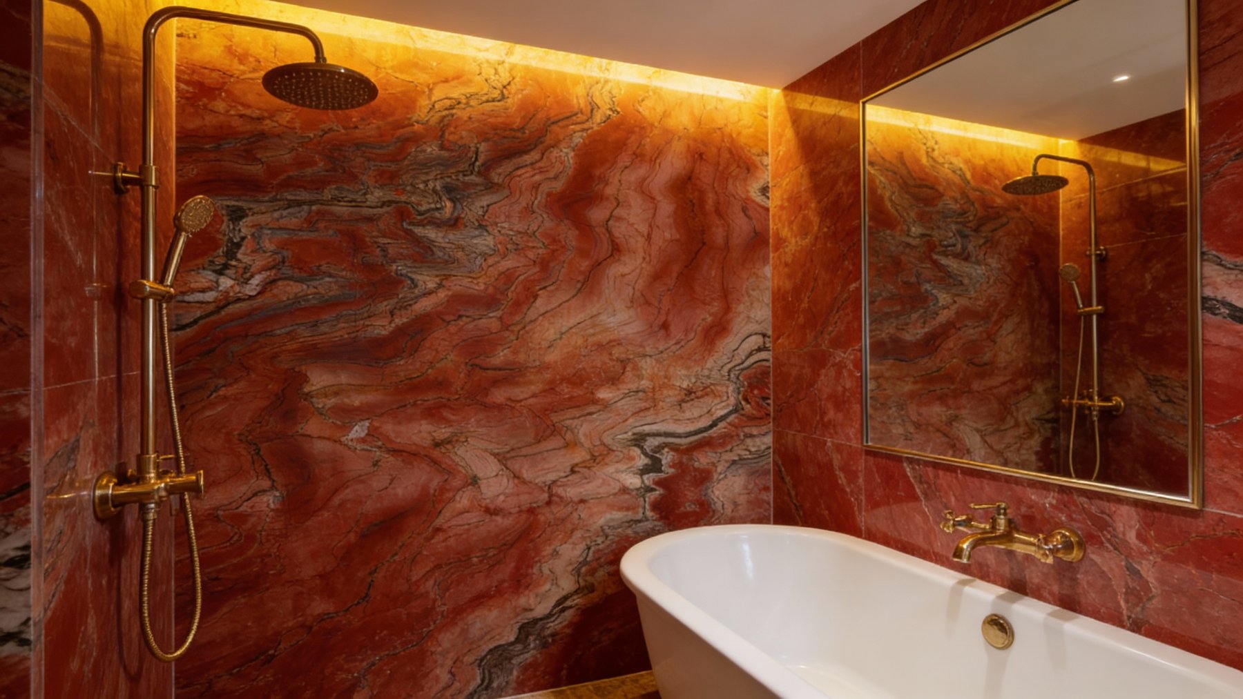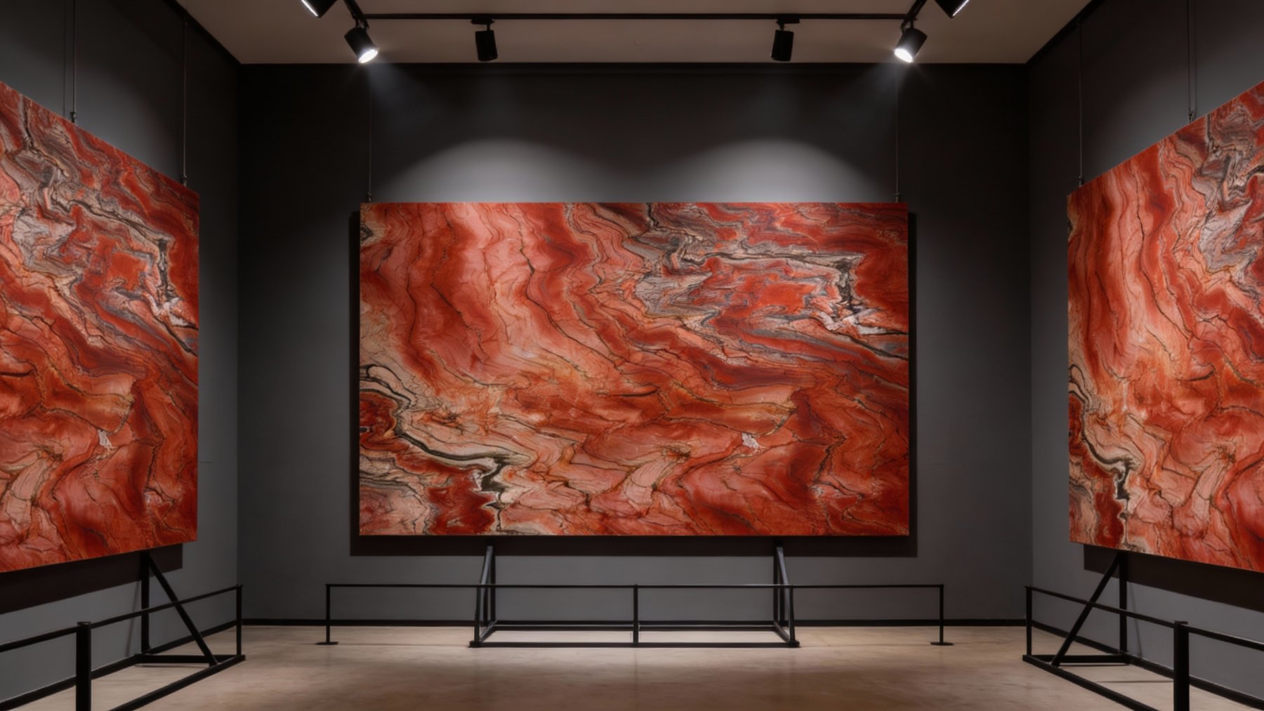 ### 底色基调 这款石材以暖色系为核心基调,交织着浓郁的红棕与橙红主色,间杂浅褐、米白等柔和过渡底色,整体呈现出如同地质沉积般的温暖层次,仿佛将自然岩层中的热力与厚重感凝萃其中,基底色调饱满且富有温度变化。### 纹理形态 纹理呈**自然流动的层状脉络**,以蜿蜒交错的曲线、漩涡状褶皱为主要形态——深浅色块相互缠绕渗透,似波浪起伏,又如岩层挤压后的自然肌理,线条流畅且充满动态韵律。无规则的纹理分布中,暗含地质层理的秩序感,每一处曲线转折都尽显自然造物的随机与生动。### 细节质感 表面质感细腻温润,带有柔和的光泽感。纹理边缘过渡自然,部分区域可见深浅不一的纤细脉络纹,偶尔点缀微小的浅色结晶颗粒;整体既保持了石材的平滑触感,又因纹理的立体起伏与细节点缀,形成“视觉有层次、触感显细腻”的双重质感,兼具自然粗粝的底蕴与温润雅致的表现力。
