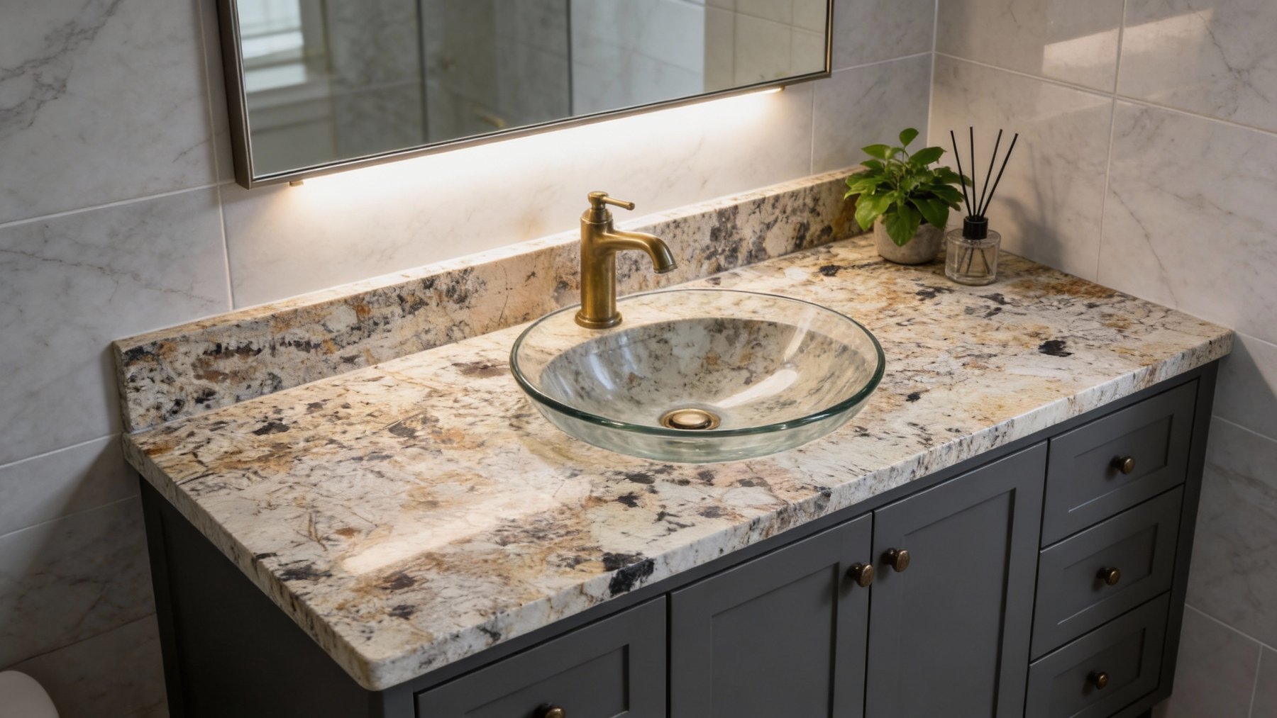 ### 底色基调 这款石材的底色以浅米白与淡奶油色为核心基调,间杂着浅灰与暖黄色的微妙过渡,整体呈现出柔和温润的暖调质感。底色并非单一纯色,而是自然晕染的杂糅感——米白的纯净、奶油的暖柔、浅灰的冷静相互交织,没有生硬的色块分割,传递出天然石材的质朴暖意与松弛感。### 纹理形态 纹理呈现出**多元交织的自然野性**: - 深色(黑、深灰)的细小星点与短线条如矿物结晶般散落在底色中,似夜空星尘般稀疏却醒目; - 棕黄、浅褐的脉络状纹理粗细不一,时而纤细如丝、时而舒展如带,相互缠绕、延伸,形成流动的视觉动线; - 半透明的浅灰斑块嵌于其中,似晶体沉淀般通透,与周围纹理形成虚实对比,丰富了层次。 整体纹理无规则可循,斑驳交错间尽显天然石材的随性之美,没有刻意的对称或重复,每一处都是独一无二的自然印记。### 细节质感 表面蕴含**细腻且富有变化的天然肌理**: - 底色区域触感细腻顺滑,呈哑光或半哑光的温润质感,贴合肌肤时自带凉润感; - 深色斑点与脉络处略有颗粒凸起,质感稍显内敛,触摸时能感受到矿物的粗粝颗粒; - 半透明斑块则透出隐约的玻璃光泽,与其他区域的哑光形成反差,光线照射下会泛起细碎的反光,增添灵动性。 整体质感厚重而真实,既有天然石材的原始颗粒感,又因不同矿物的质感差异,呈现出层次丰富的触摸体验,仿佛能感知到地质演变的痕迹。