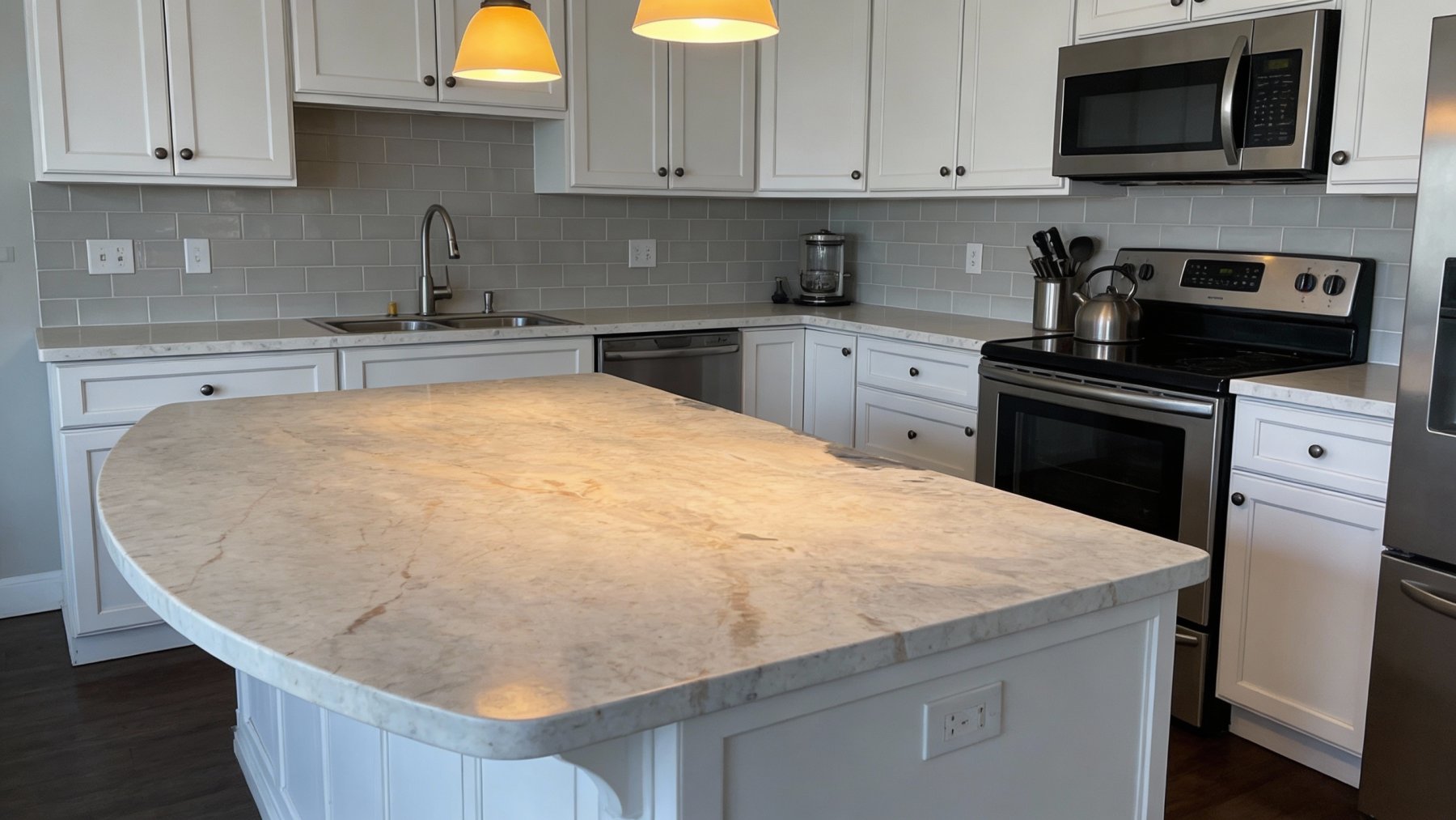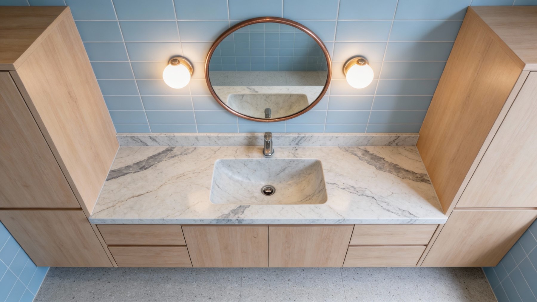 ### 底色基调 这款石材的底色以**柔和浅灰**为核心基调,间杂着淡青与米白的朦胧晕染,整体呈现出清新雅致的冷调质感,既不张扬也不沉闷,如同清晨薄雾笼罩的湖面,给人宁静舒适的视觉感受。 ### 纹理形态 纹理呈**自然流动的云雾状脉络**,以浅褐、深灰等低饱和色调的纤细线条与斑驳色块交织,无明显规则却暗含韵律感:时而如轻烟般弥散,时而如细流般蜿蜒,层次叠嶂却不杂乱,仿佛水墨在宣纸上晕开的渐变效果,赋予石材轻盈飘逸的动态美。 ### 细节质感 细节处可见**细腻温润的自然肌理**:表面平滑却不失微妙的纹理起伏,纹理边缘过渡柔和,无生硬切割感;触感应是细腻顺滑,兼具石材的坚硬质感与柔和的柔光效果(非刺眼高光);微小的斑驳色块中隐约透出矿物颗粒的朦胧光泽,整体散发着低调内敛的高级感,既有石材的耐用性,又饱含自然材质的亲和温度。