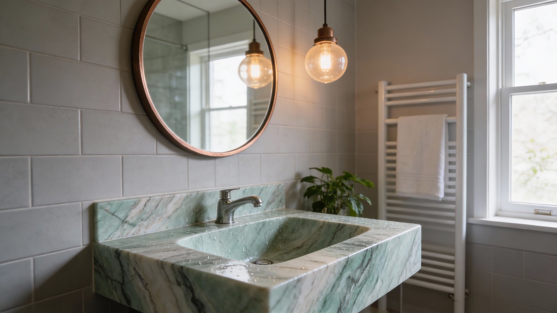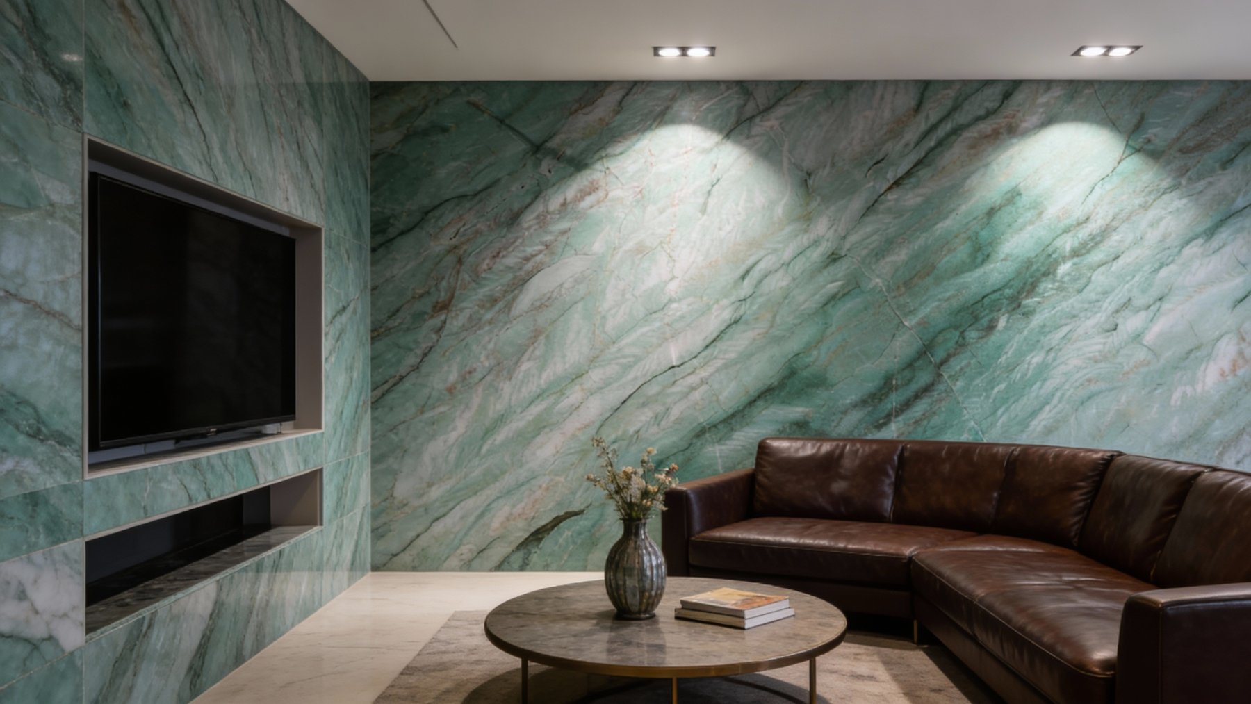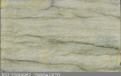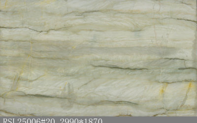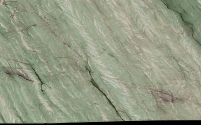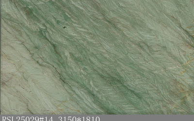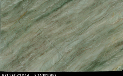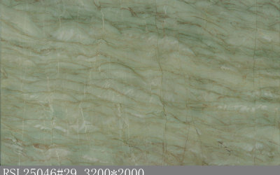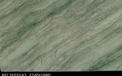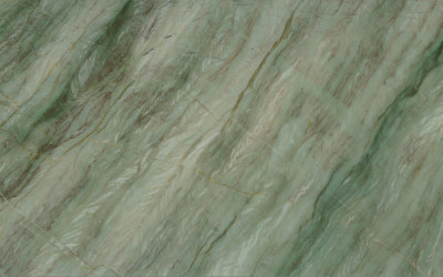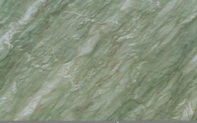 #### **一、底色基调:清新雅致的青绿色系** 底色以**柔和的青绿色**为核心基调,融合浅灰与淡蓝的微妙晕染,形成层次丰富的色彩过渡。整体色调既保留了自然石材的质朴感,又透出一丝静谧的清凉感——不似鲜艳翠绿般张扬,而是如雨后青苔般温润内敛,给人视觉上的舒缓与放松,适配现代简约、新中式等多种风格的空间氛围。#### **二、纹理形态:流动层叠的自然动态感** 纹理呈现**层叠流动的线条形态**,似水波涟漪或地质层理的自然痕迹: - 主纹理为深浅不一的绿色条纹,以蜿蜒曲折的曲线为主,方向舒展且富有变化,既有大面积的平缓过渡,也有局部的密集交织; - 间杂**深绿至近黑色的细密脉络**,如同天然石材的“血管”,穿插于青绿色基底中,增强了纹理的层次感与立体感; - 整体无刻意雕琢的规整感,完全遵循自然生长的韵律,呈现出“虽由天造,宛如画成”的动态美学。#### **三、细节质感:温润细腻的天然肌理** 细节处彰显石材的**坚实与柔和并存的质感**: - 表面触感应是**平滑中带着细微的肌理起伏**,哑光或半哑光的处理让质感更显温润,避免了高光石材的冰冷感; - 纹理边缘过渡自然,无生硬边界,深色脉络处隐现细微的结晶光泽,似玉石般的细腻; - 整体质感兼具石材的厚重坚实(物理属性)与自然材质的亲和感,触手生凉却不凛冽,给人视觉与触觉的双重舒适体验。