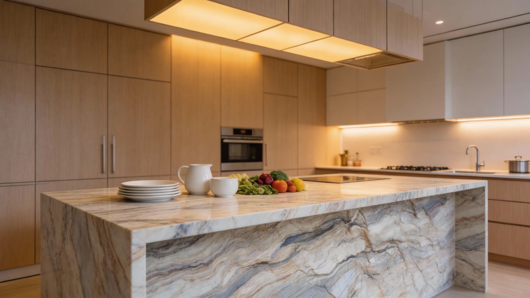 ### 底色基调 石材底色以浅米白、灰白为主调,间杂淡褐与浅灰的自然过渡色,整体基调柔和温润,暖感中透着清雅。深浅色泽的交织让基底不显单调,既保留了浅色系的明亮感,又因过渡色的融入增添了天然石材的质朴厚重气息。 ### 纹理形态 纹理以**层状交织+动态扭曲**为核心特征:层理结构似沉积岩经地质作用后的自然褶皱,呈现流动的波浪状弯曲;深灰近黑的粗线条与浅褐、米黄的细脉络交错穿插,部分区域纹理呈不规则的细碎裂纹肌理,兼具层理的秩序感与自然的随机性。整体纹理层次丰富,动态十足,似记录了地质演变的岁月痕迹。 ### 细节质感 表面质感细腻温润,纹理边缘过渡自然无生硬割裂感;石材整体透着密实厚重的质感,局部肌理带细微起伏,似蕴含地质沉淀的岁月感;触感应是平滑中隐现天然肌理的微妙起伏,哑光(或半哑光)的质感更凸显古朴雅致。细观可见纹理中细微的色泽渐变与结晶状小颗粒点缀,进一步丰富了视觉层次与天然质感。