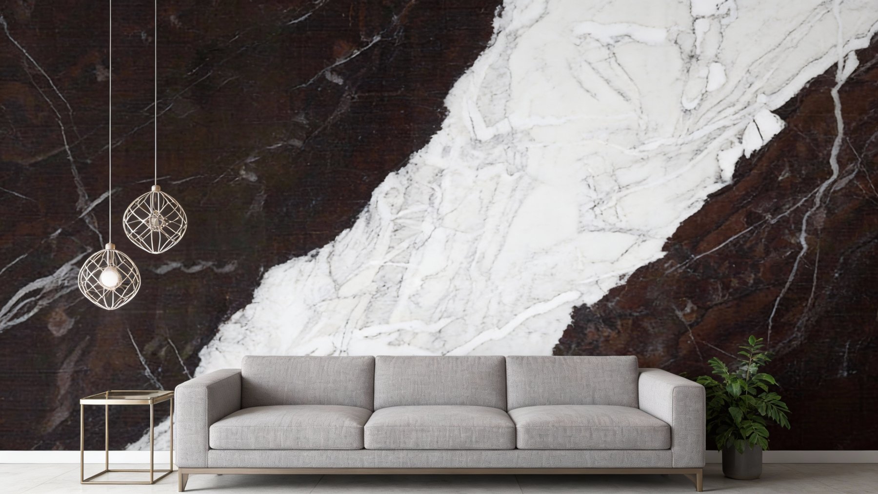 石材表面细腻光滑,经抛光后带有温润的光泽感,红棕色基底与白色纹理形成鲜明却柔和的对比。纹理边缘过渡自然,触感细腻且富有层次:白色纹路部分明亮通透,与厚重的红棕色底色相互映衬,既展现出天然石材独有的粗犷力量感,又兼具精致细腻的质感,每一处纹理的走向、粗细变化都藏着自然造物的独特细节,尽显高级与质感。