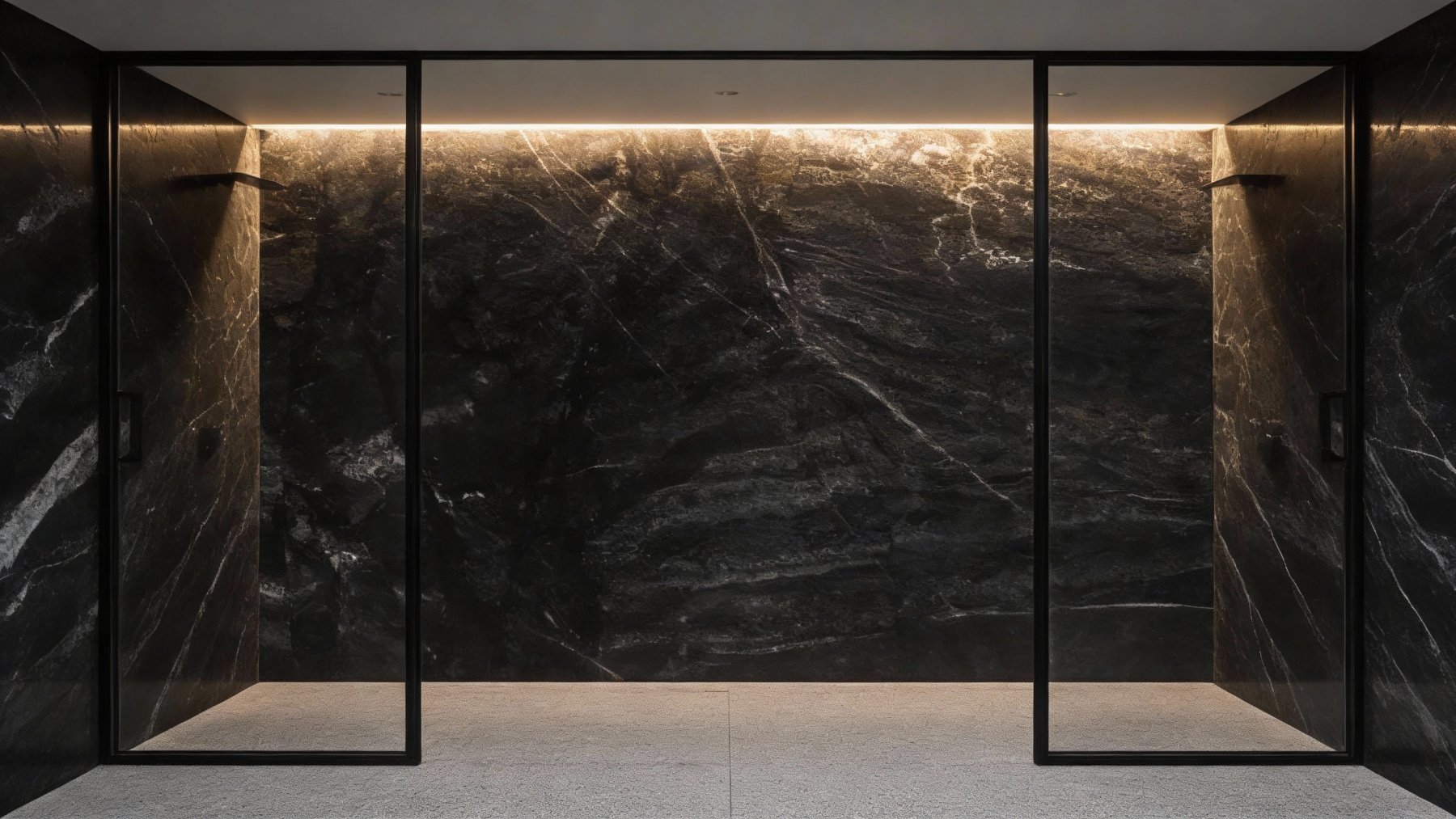 ### 底色基调 这款石材的底色以**深邃的纯黑**为核心基调,间杂着暗灰、墨蓝等冷调层次,整体呈现出浓郁而沉稳的质感,如同被墨色晕染的夜空,低调中透着高级感,给人静谧、厚重且充满张力的视觉印象。### 纹理形态 纹理以**不规则的脉络状与线条状**为主,似自然地质运动中形成的矿物裂隙或流体沉淀痕迹。线条粗细交织:纤细的纹路如丝般蜿蜒,交错纵横;稍宽的带状纹理则呈斜向或纵向延展,带着流动的随性与自然的张力,无刻板的几何规律,反而像记录地质变迁的“时光轨迹”,充满原始的野性与艺术感。### 细节质感 表面经抛光处理后,底色区域细腻温润,泛着柔和的光泽;纹理部分则因矿物成分差异,呈现出轻微的反光对比——浅色脉络(银灰、浅白调)如碎钻般隐于黑底,触感应是光滑中带着细微肌理变化,既保留了石材的天然质感,又兼具精致的现代装饰性。近距离观察时,深浅纹理交织的层次丰富,让整体不显单调,每一处细节都藏着自然的随机之美。