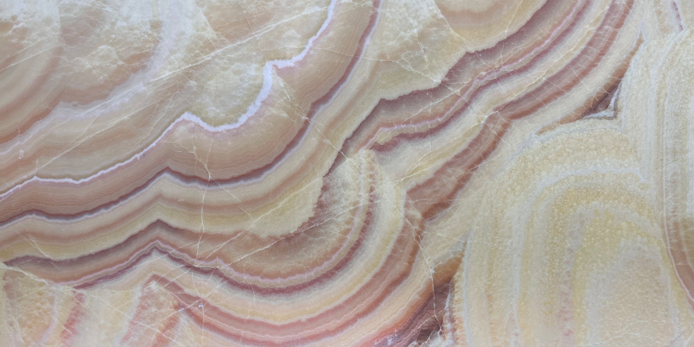 表面质感细腻光滑,带有温润的光泽感,触感应是柔和亲肤的。条纹间的色彩渐变微妙,细微处可见天然石材的肌理脉络,偶有浅淡的天然纹路点缀,既保留了自然的质朴感,又不失精致细腻,整体质感高级且富有生命力,兼具视觉美感与触觉舒适度。